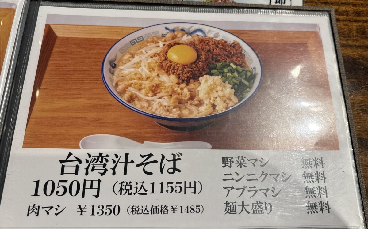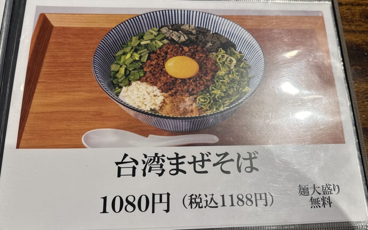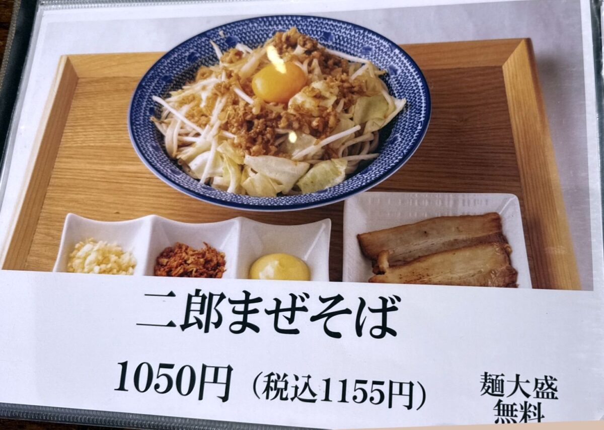 当店はつけ麺メインながらも、汁そば、脂そば、台湾まぜそば、二郎まぜそばなども品揃え。