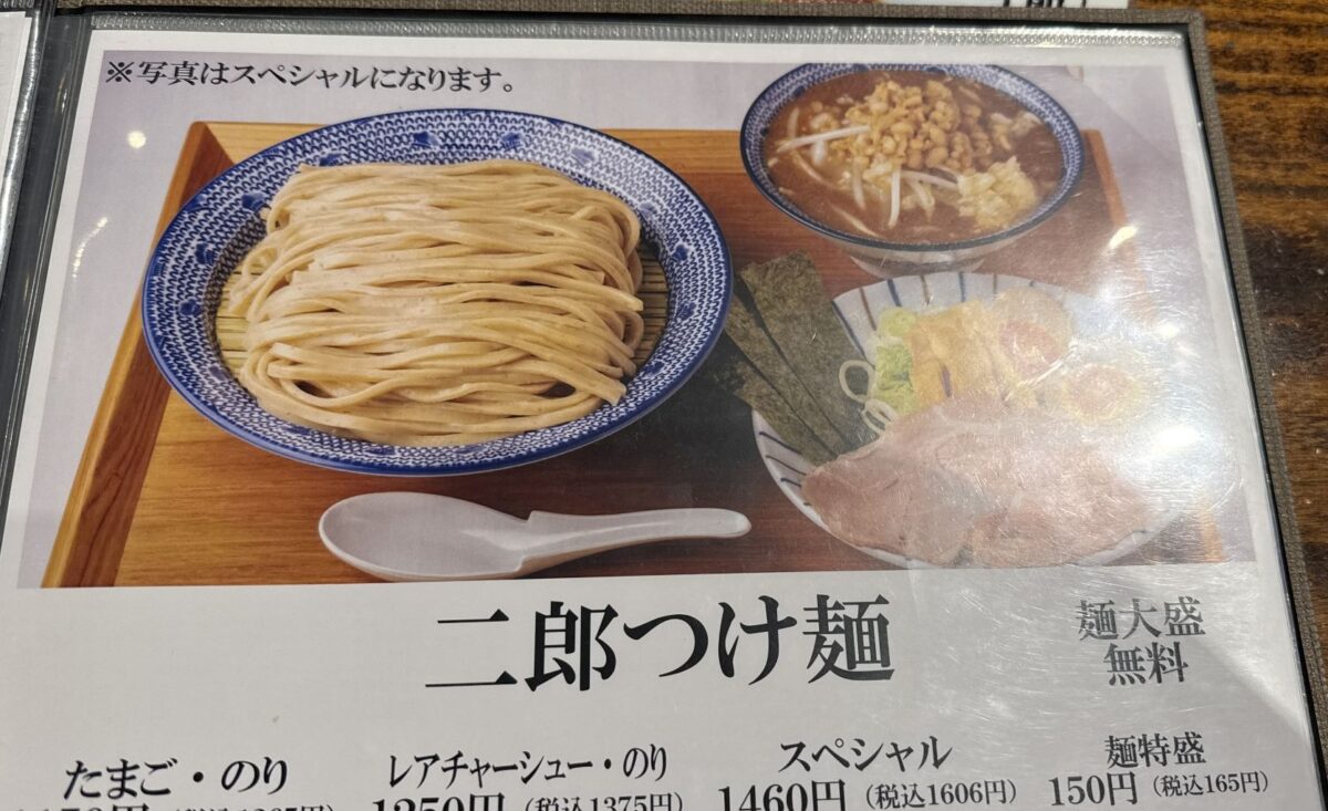 ・残念なのは“レアチャーシュー”という表示トセントラルキッチンスープの力感不足。濃厚つけ麺スペシャル。2025年10月31日閉店。つけ麺ささ木みよし店(愛知県みよし市)