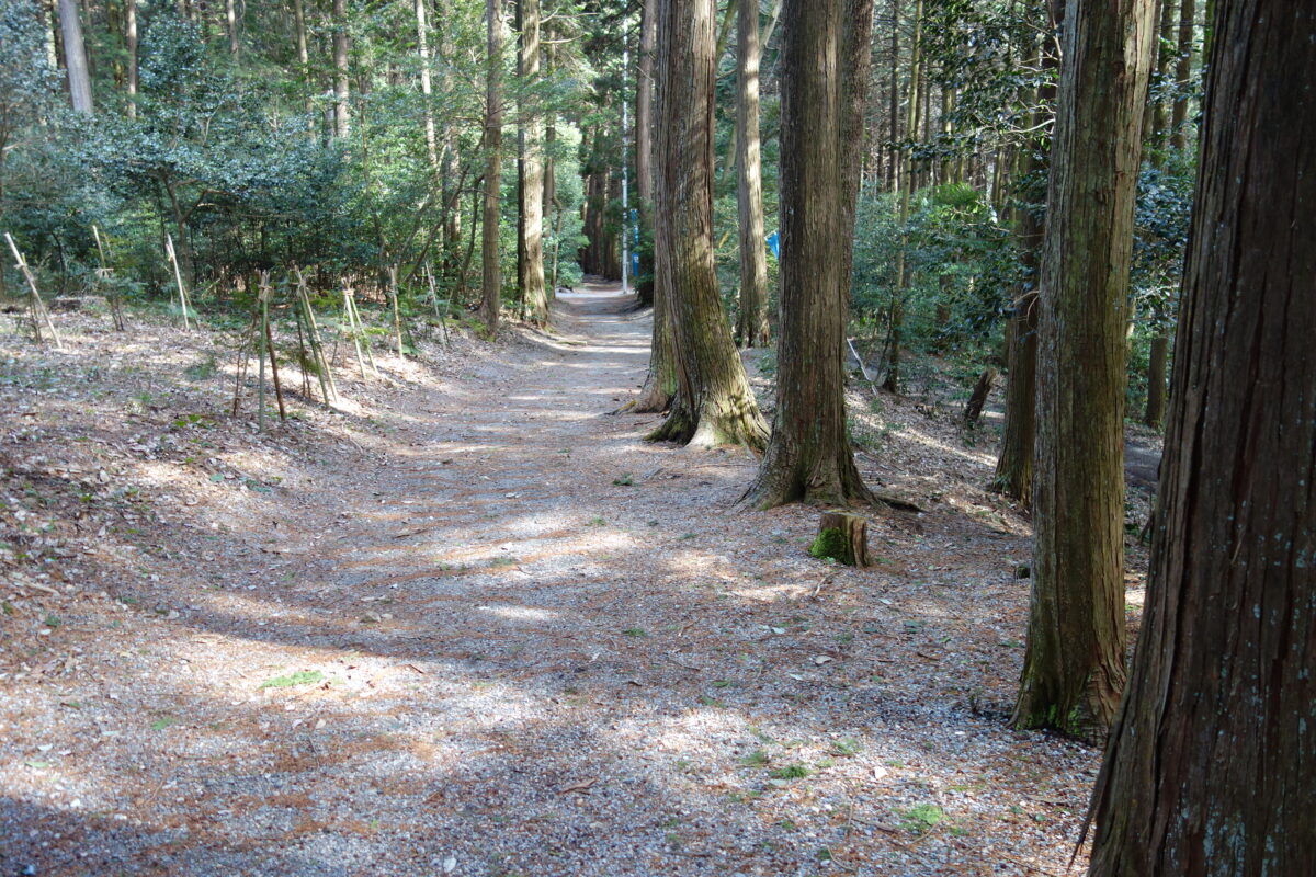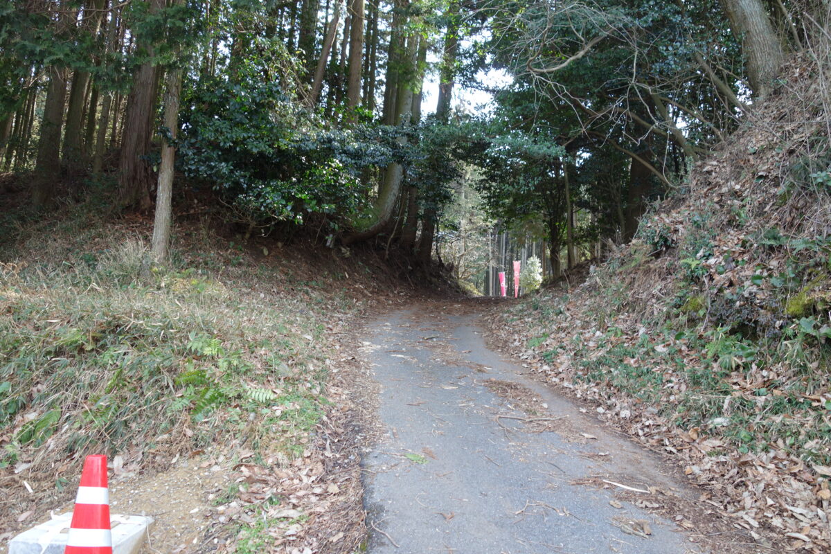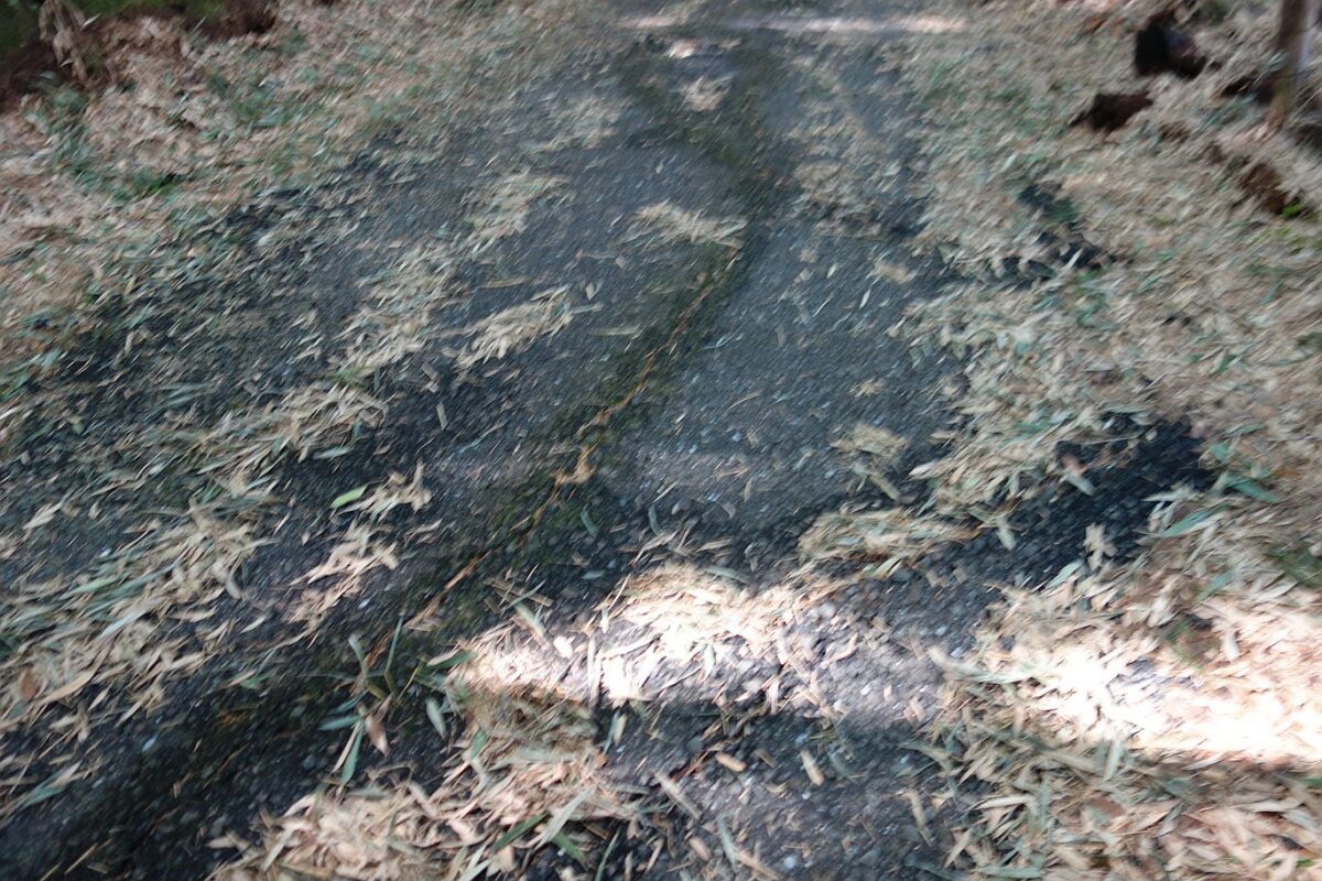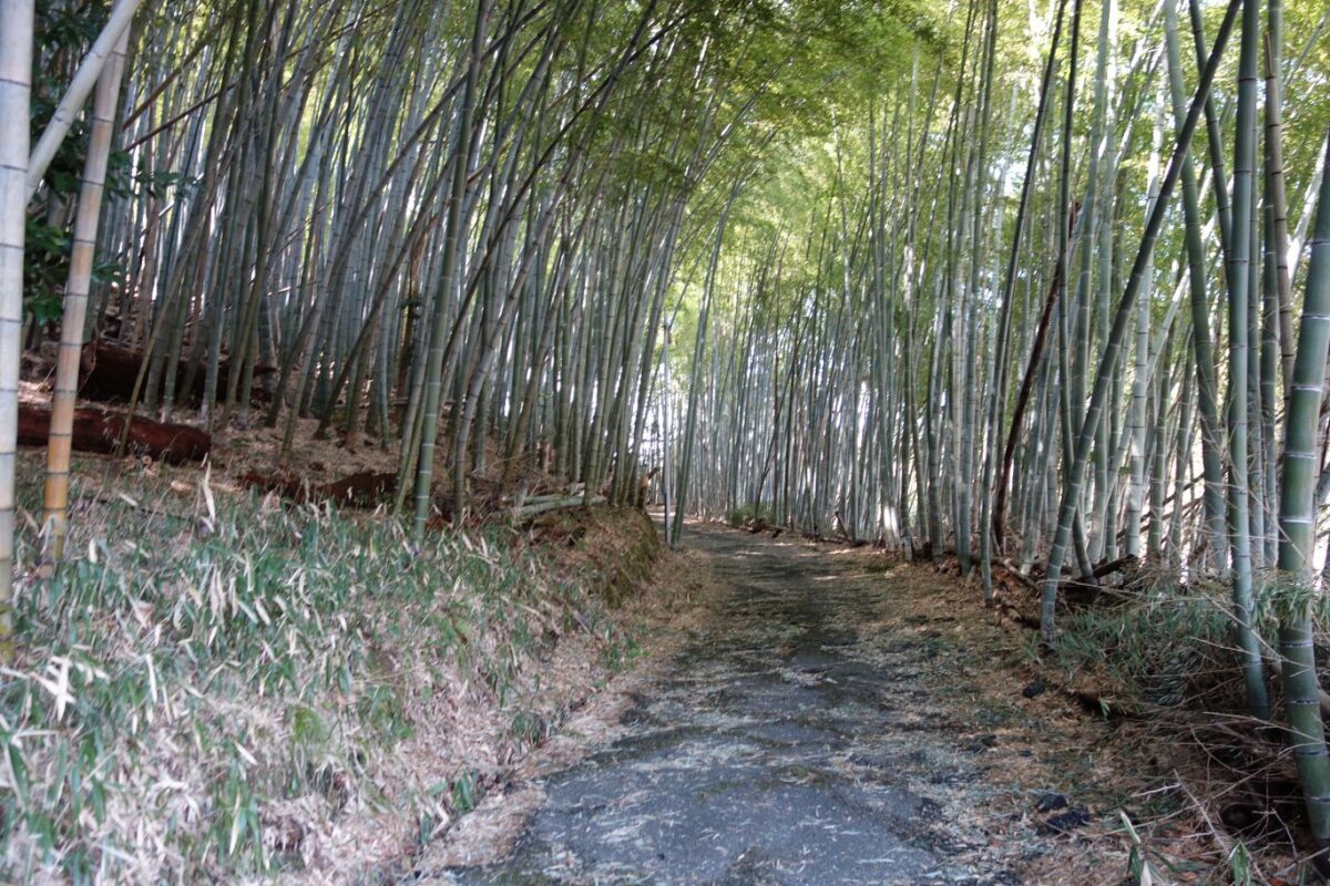 そこから舗装された竹林の道を進む。アスファルトを持ち上げる竹の根でしょうか、道がボコボコ。標高差25mなので楽勝。
