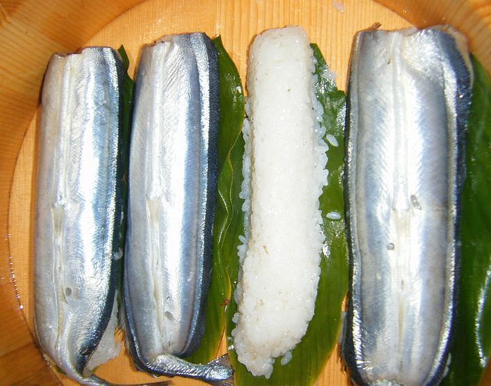 ↓ 奉飯のサンマ寿司は腹開きにして背骨を残す