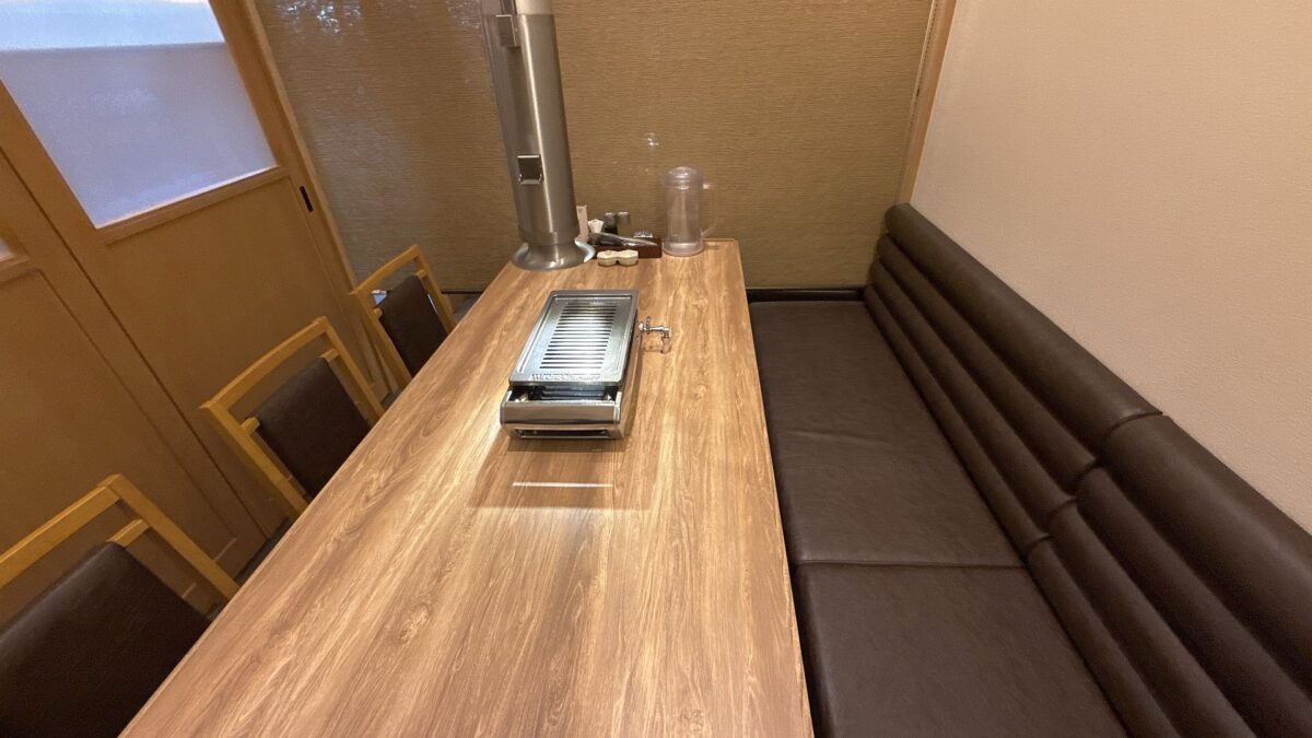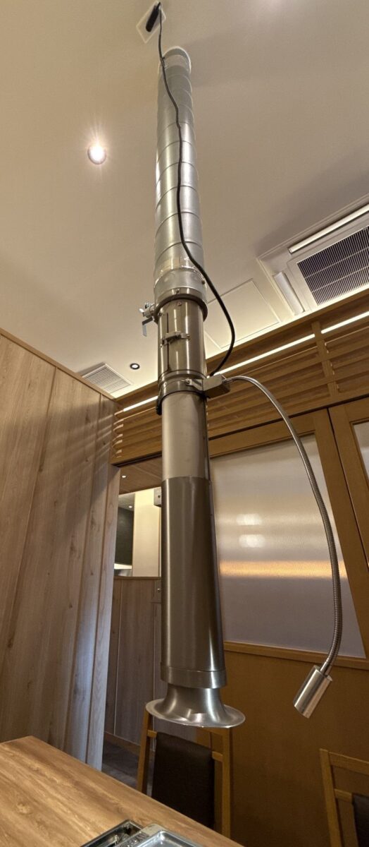 席は個室風に仕切られていて、煙突というかテーブルの上に設置された排煙ダクトが煙を排出する造り。