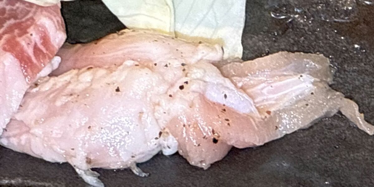 残念ながら産地表示をされていないので出処は推測となるが、当然、海外産のチルド品。
