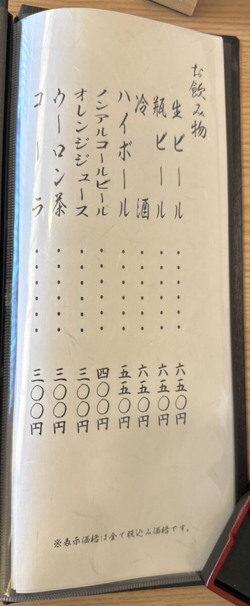 料理を運んできてくれた女性従業員にサイズを尋ねたら即答してくれたことには感激。