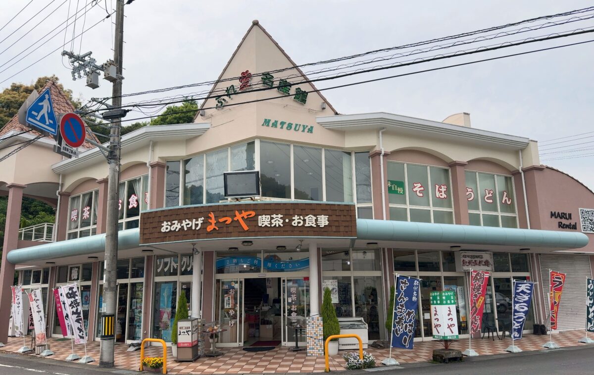 白浜パンダ観光の最後は「まつや,ふれあい名産館」(和歌山県白浜駅)紀州よくばり御前,ご当地土産,梅うどん,梅そうめん,梅そば,成戸製麺所,ふみこ農園。いたに土産物店,オーシャンアロー,