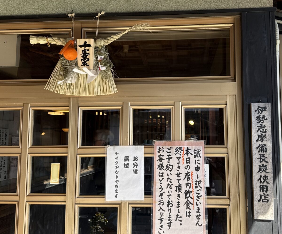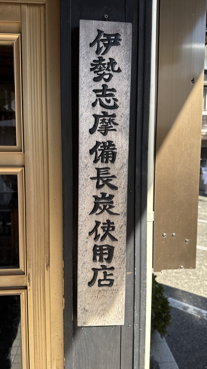看板に「伊勢志摩備長炭使用店」と表示。備長炭はウバメガシを原材料として作る炭素率95%以上の白炭。遠赤外線の効果で外は焦がさず、食材をふっくらと焼き上げることができるので鰻調理に最適。ちなみに伊勢は紀州ではないので紀州備長炭ではありません。伊勢志摩備長炭。