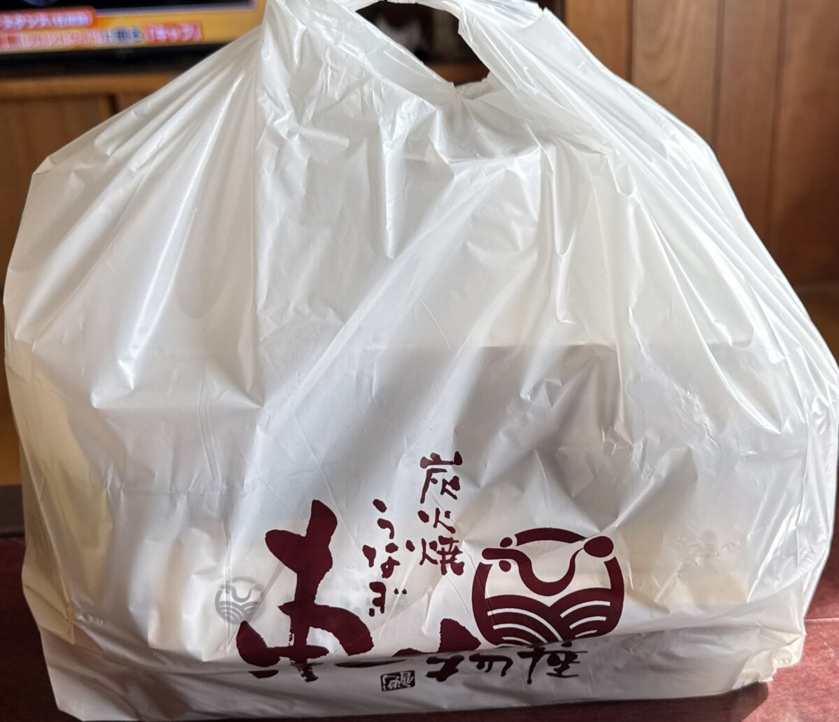 時間指定で受け取りに行き、テイクアウトでホカホカうな丼を食す。