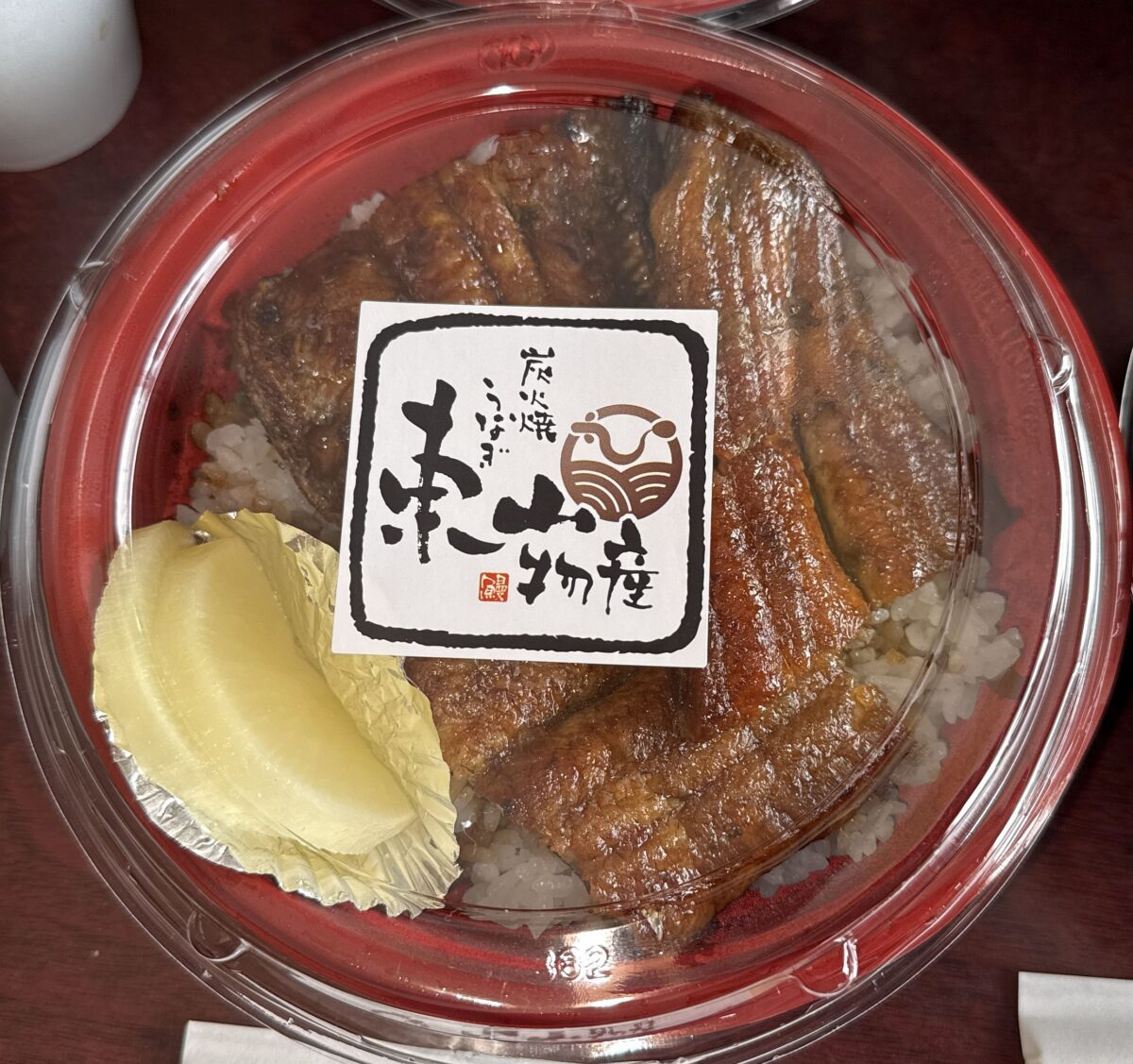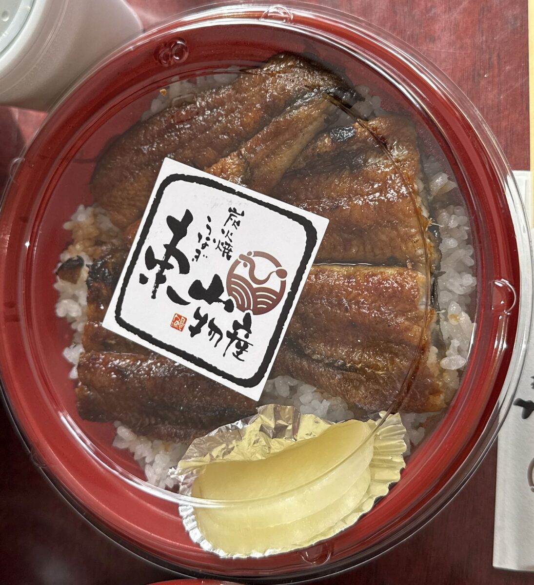 時間指定で受け取りに行き、テイクアウトでホカホカうな丼を食す。
