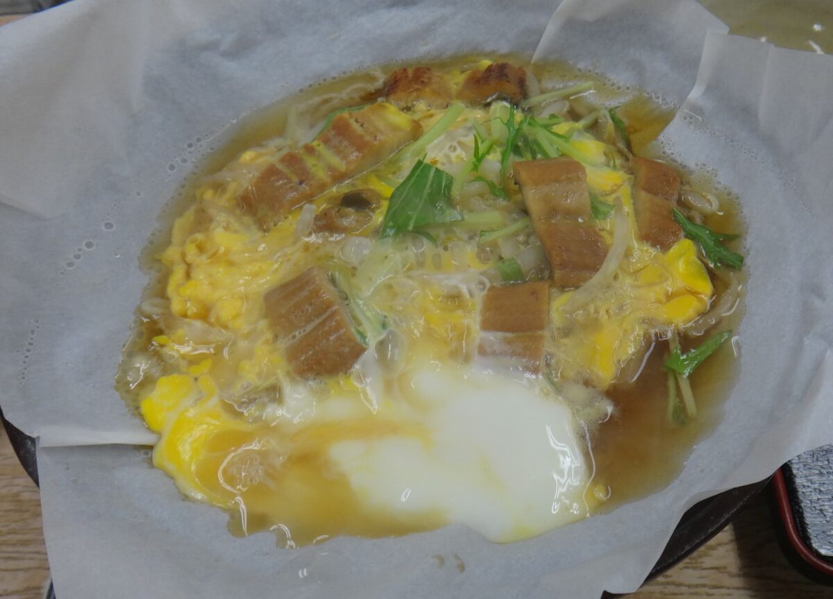 これは茹で麺だろうか、それとも社食で使うような冷凍麺だろうか。食感としては茹で麺を温めなおしたものと推測。