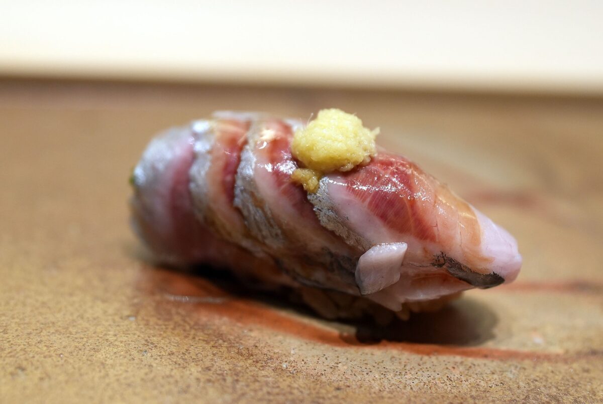 握り具合はやはり数をスピーディーにこなさなければならない立ち食いカウンターワークなので、シャリ間の空気感を含めて、バラツキがあるように感じたが、許容の範囲内。