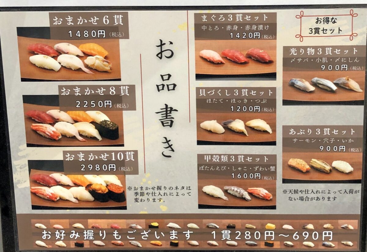 ただし、本店のおまかせ15貫8,500円~10500円や伊勢コース、大将コースと比較してはいけないかも。