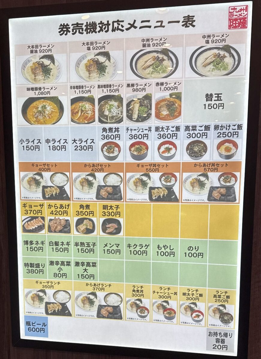 博多・大牟田ラーメンをメニュー分けして提供するというのが見た目の特徴。