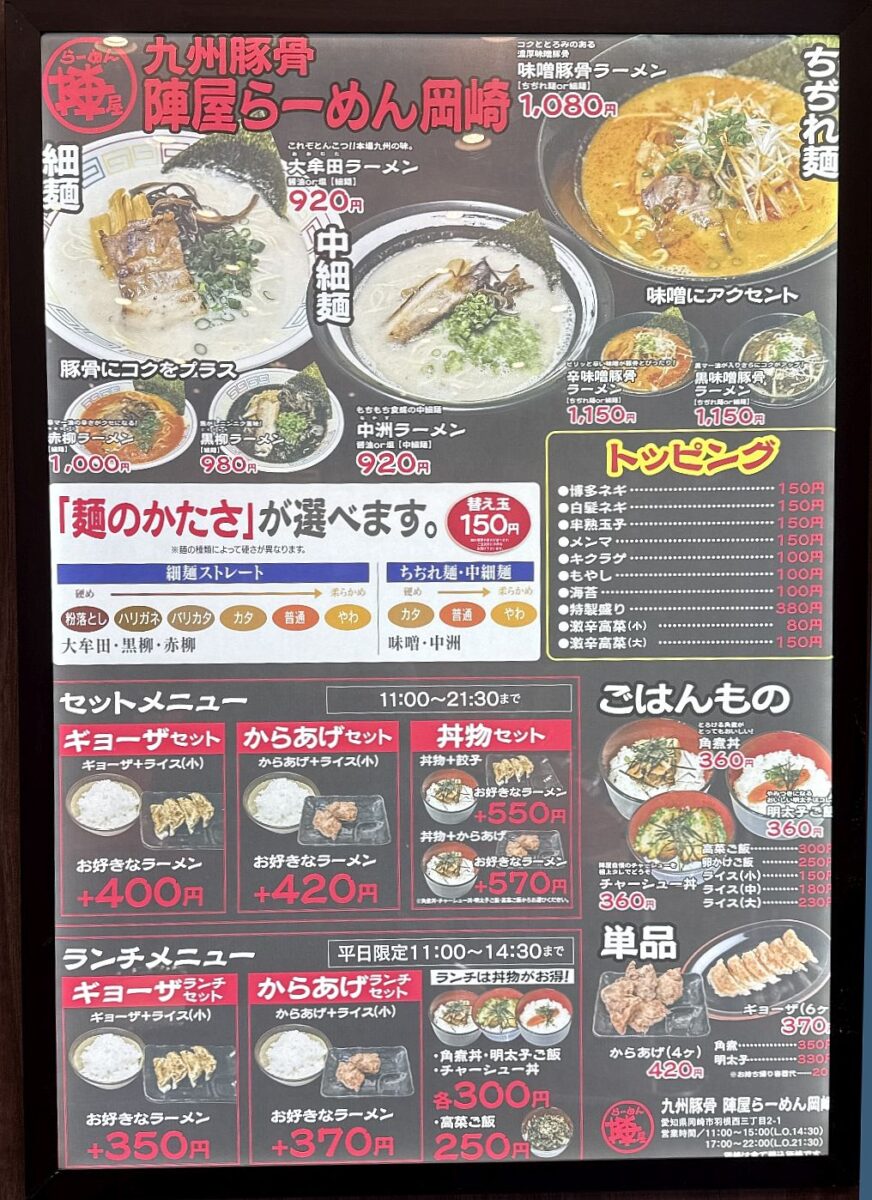 西尾市にある移転前の店舗で実食して以来の陣屋らーめん。今回はパチンコマルマンM&K岡崎店に併設した陣屋ラーメン2号店で実食。