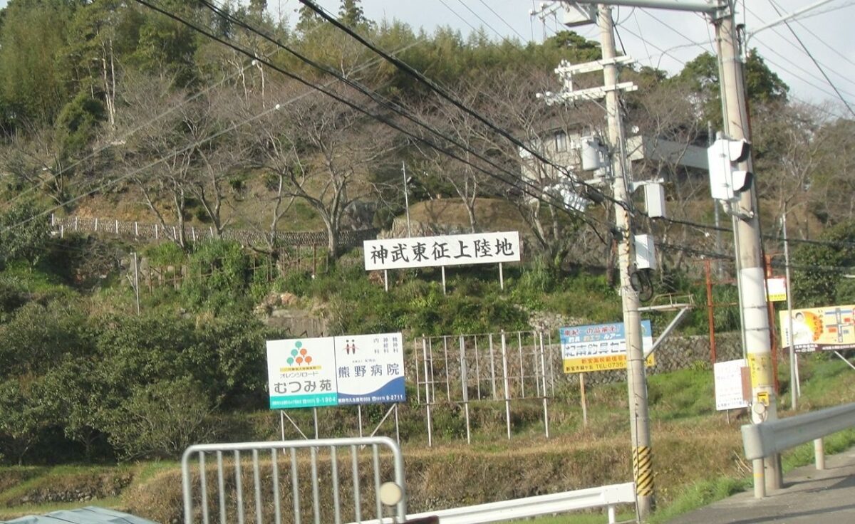 通過する度に子供に「このあたりが神武東征時の上陸地点」と説明した神武天皇聖蹟 狹野顕彰碑もある。