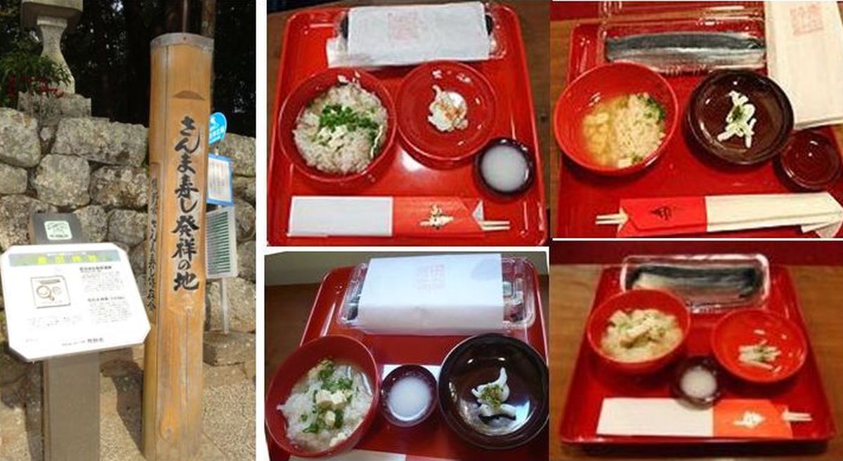 さんま寿司発祥の地である産田神社(熊野市)には「奉飯」という祭事があり、中骨まで残したさんま寿司が奉納される。