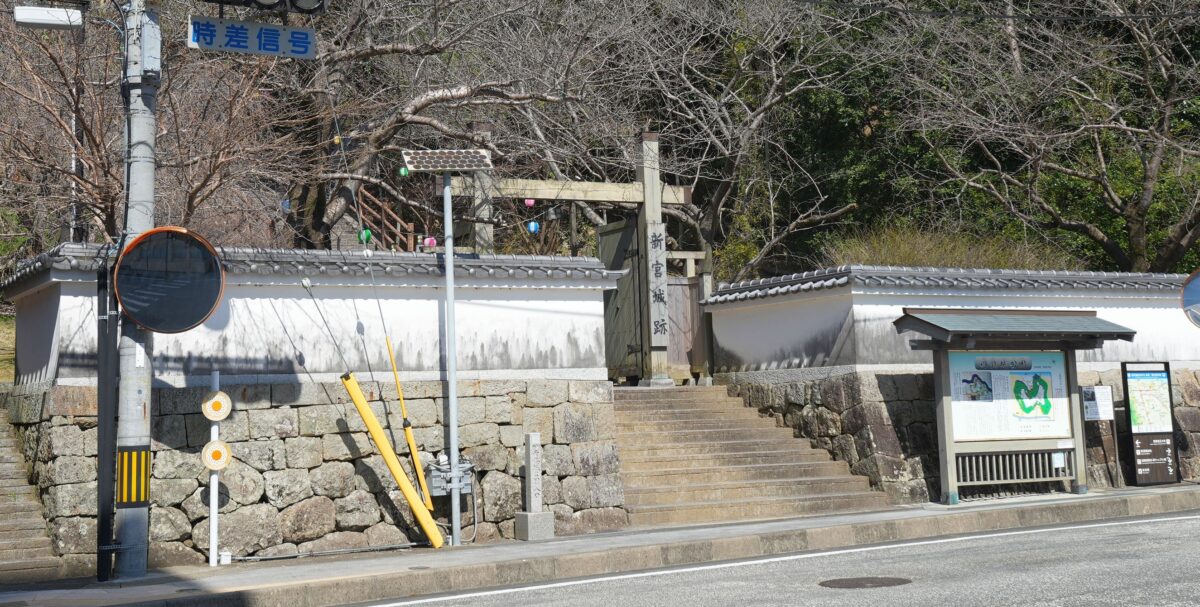 国の史跡名称は「新宮城跡附水野家墓所」。丹鶴山に築かれているが平山城とされている。
