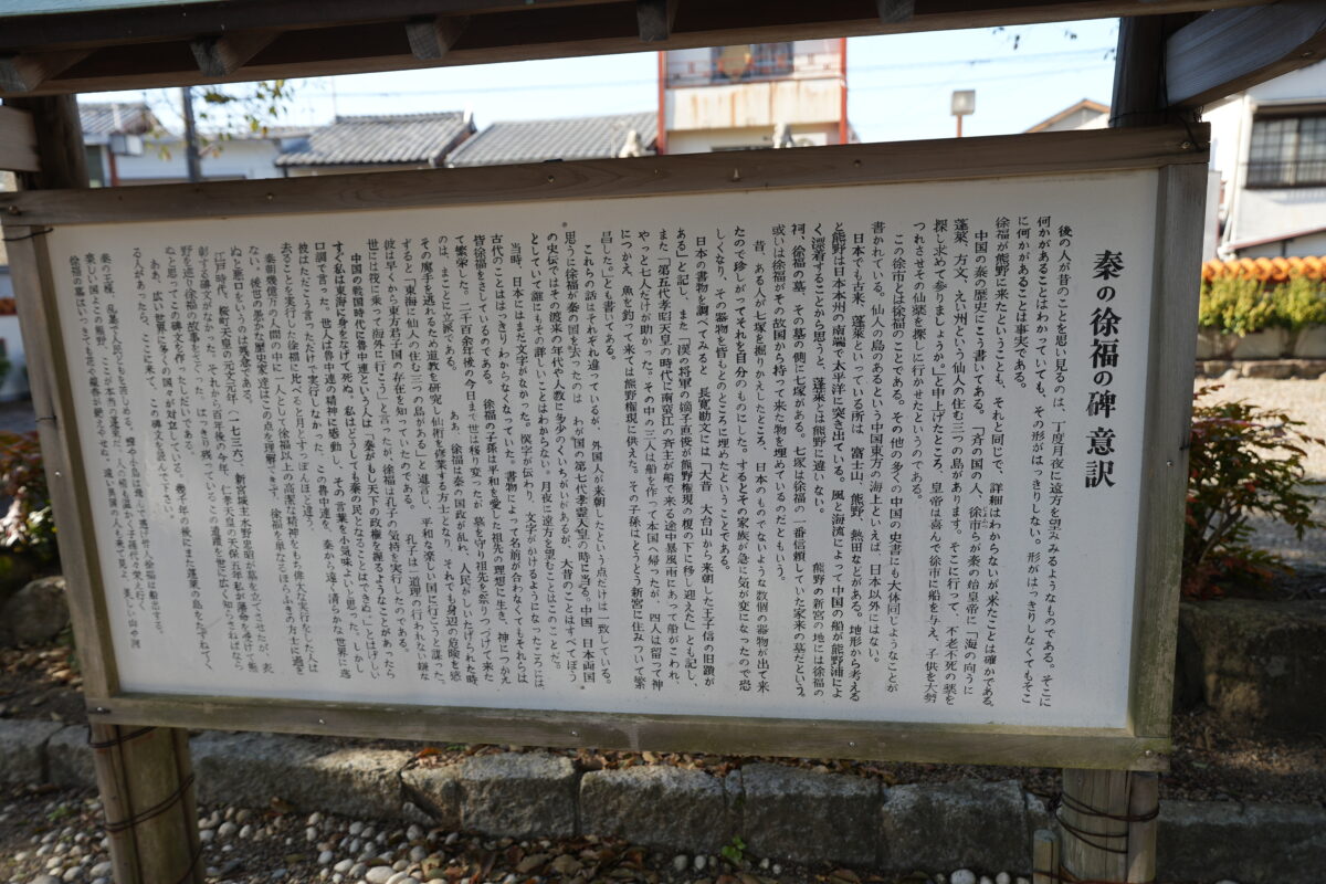 全国各地にも徐福伝説が残るが、和歌山県新宮市に徐福公園があり、徐福の墓がある。