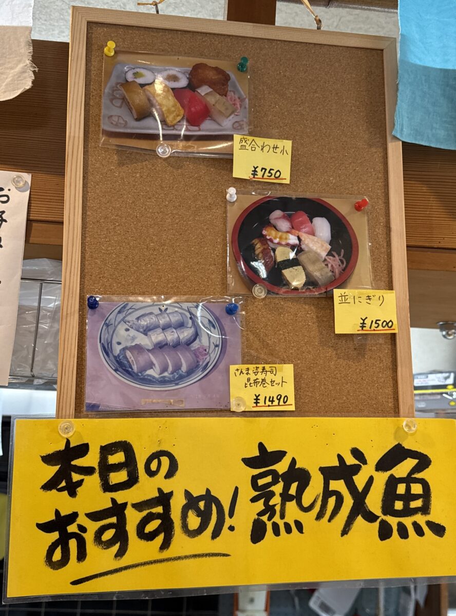 さんま姿寿司に加えて熟成寿司を注文。食が細いので熟成寿司は1皿だけ。