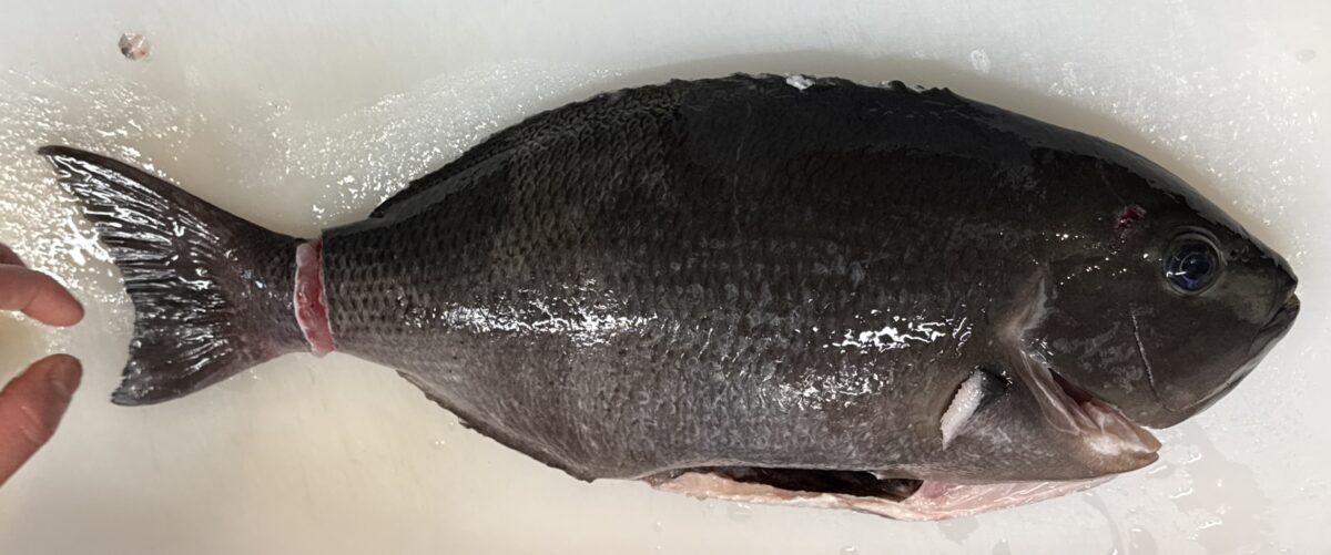 ↓ 津本式血抜きを施したグレ(徐福寿司にて)