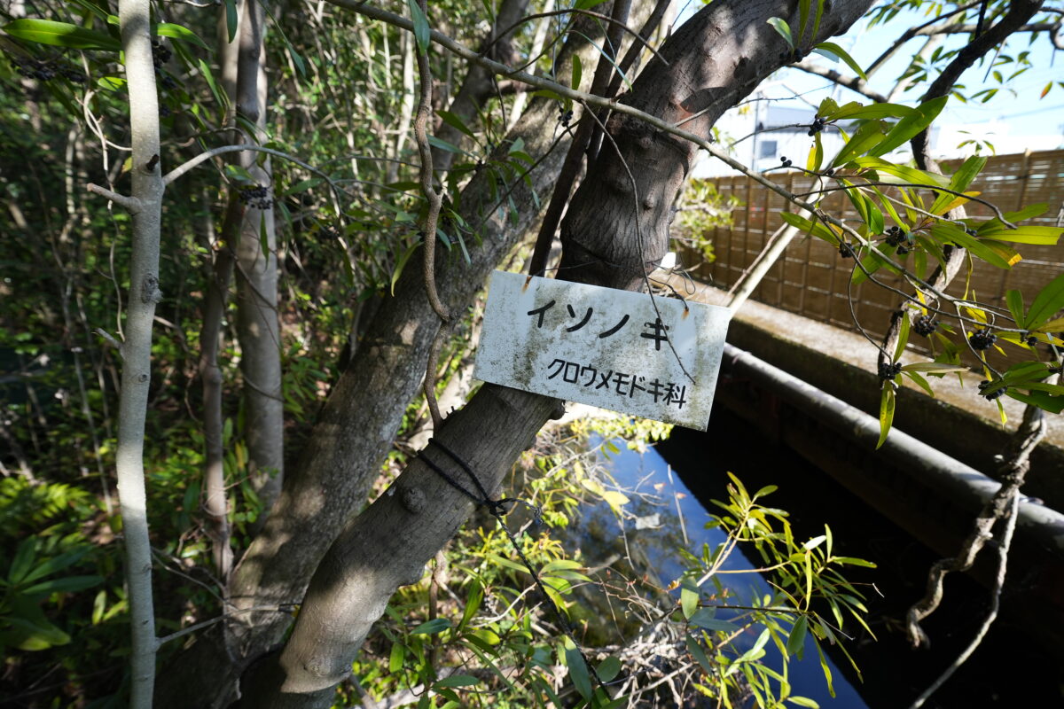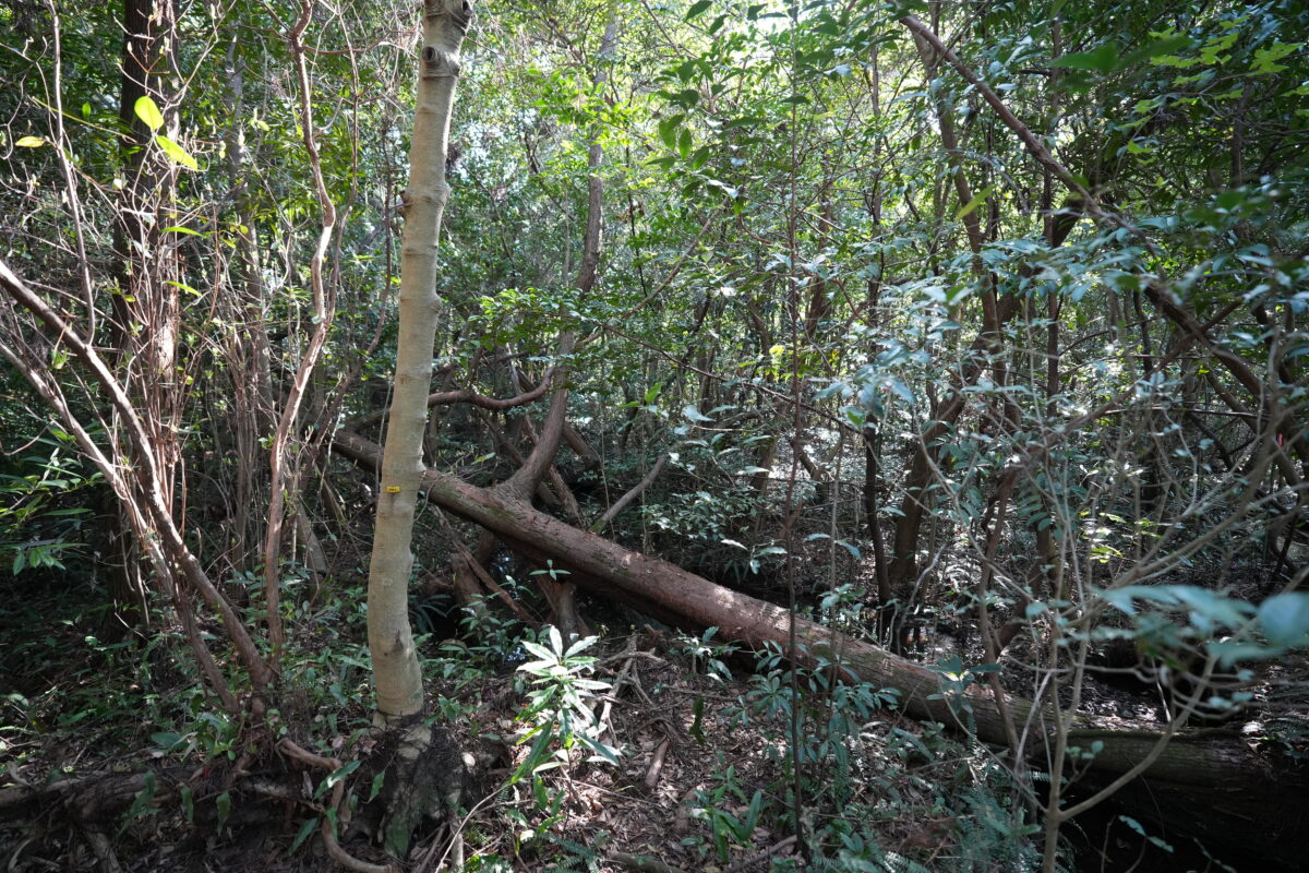 この東西85m、南北60mで面積約5,000㎡ほどの浮島を覆う樹木はスギ、ヤマモモ、アカマツ、イヌツゲ、ヤブニッケイ、コバンモチなど。