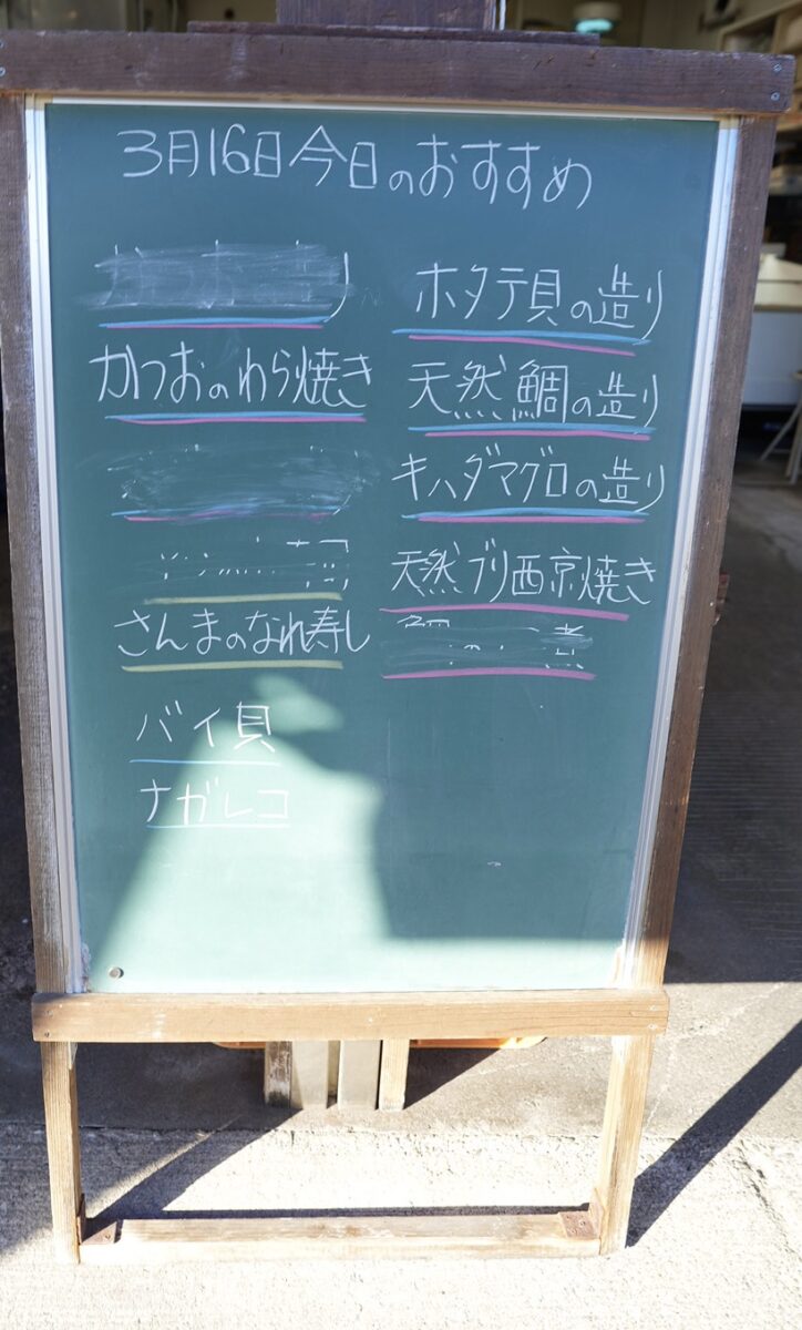 当日は荒天が続いたこともあり、残念ながら串本~太地~勝浦~那智~宇久井~三輪崎などの近隣漁港で当日水揚げされた地場魚種は見当たらず。