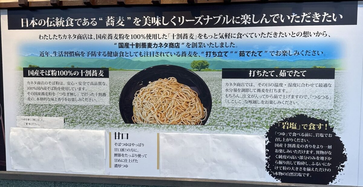 非常に面白いが、蕎麦を食した後の蕎麦湯は残ったつゆの中に入れることでかえしの味も一緒に味わえるものの、味が薄いのがちょっと物足りない。
