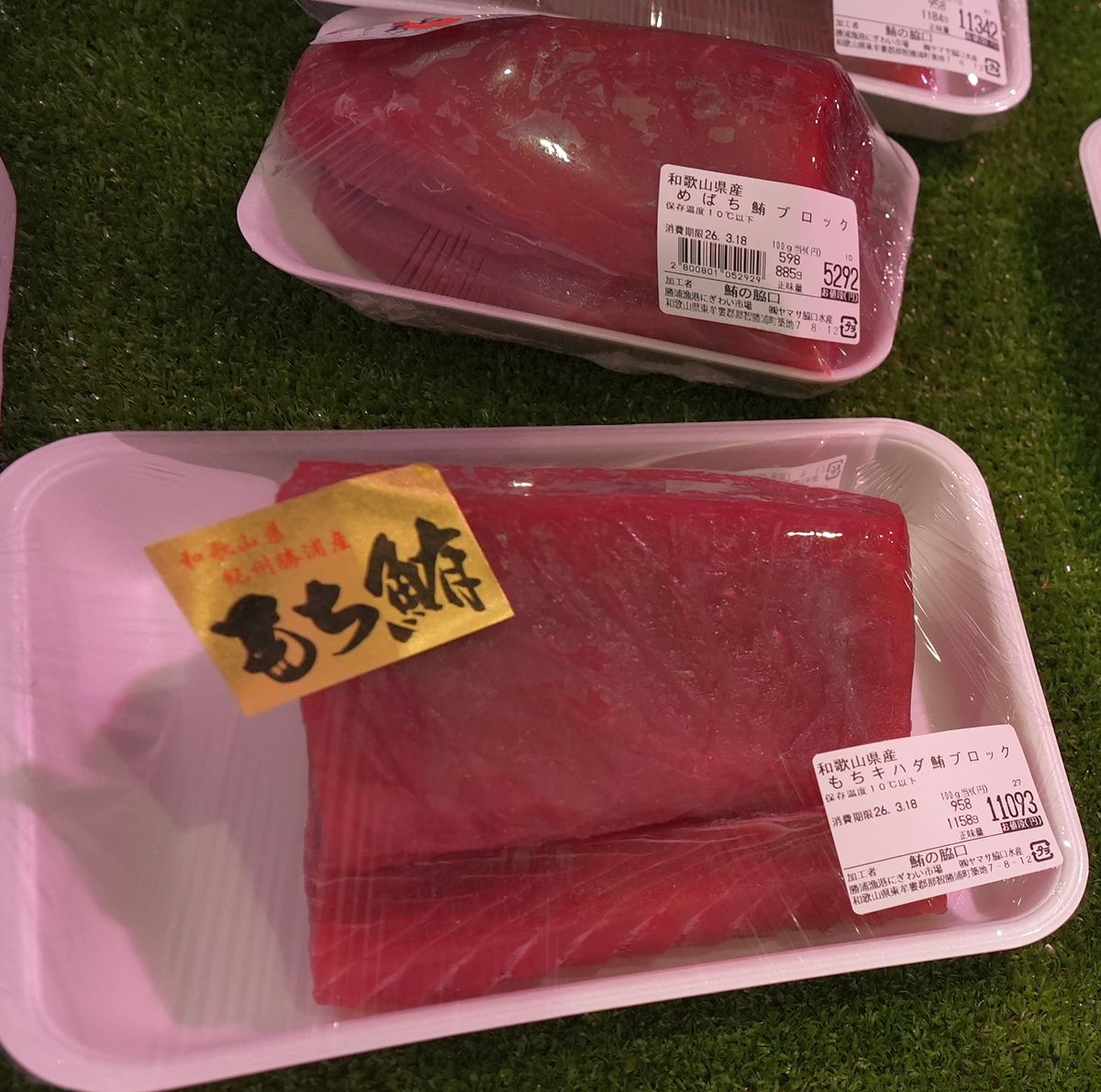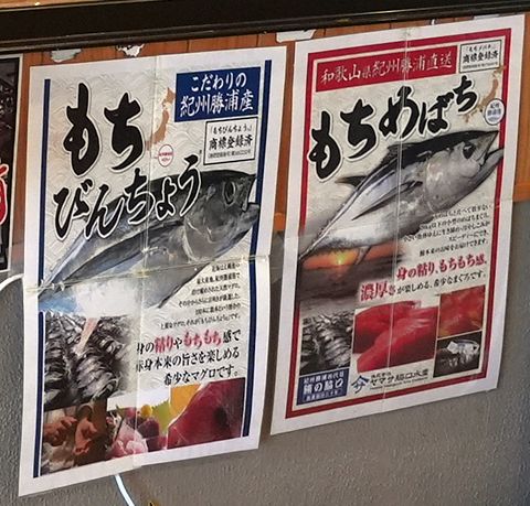 残念ながら今回の旅行ではモチモチメバチマグロにもモチモチビンチョウマグロにも出会えず、メバチマグロは勝浦漁港にぎわい市場の店でブロックを見たが、飲食店やホテルでは無い状況。理由は荒天候の所為で漁に出られないため。