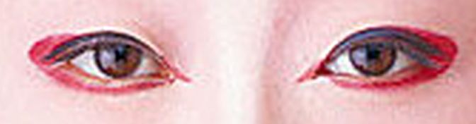 歌舞伎や日本舞踊化粧法のひとつで、水紅または油紅を筆につけ、目張りを入れることで目を大きくはっきり見せることを目的とする。また、七五三や祇園の舞妓の場合は魔よけの意味もある。