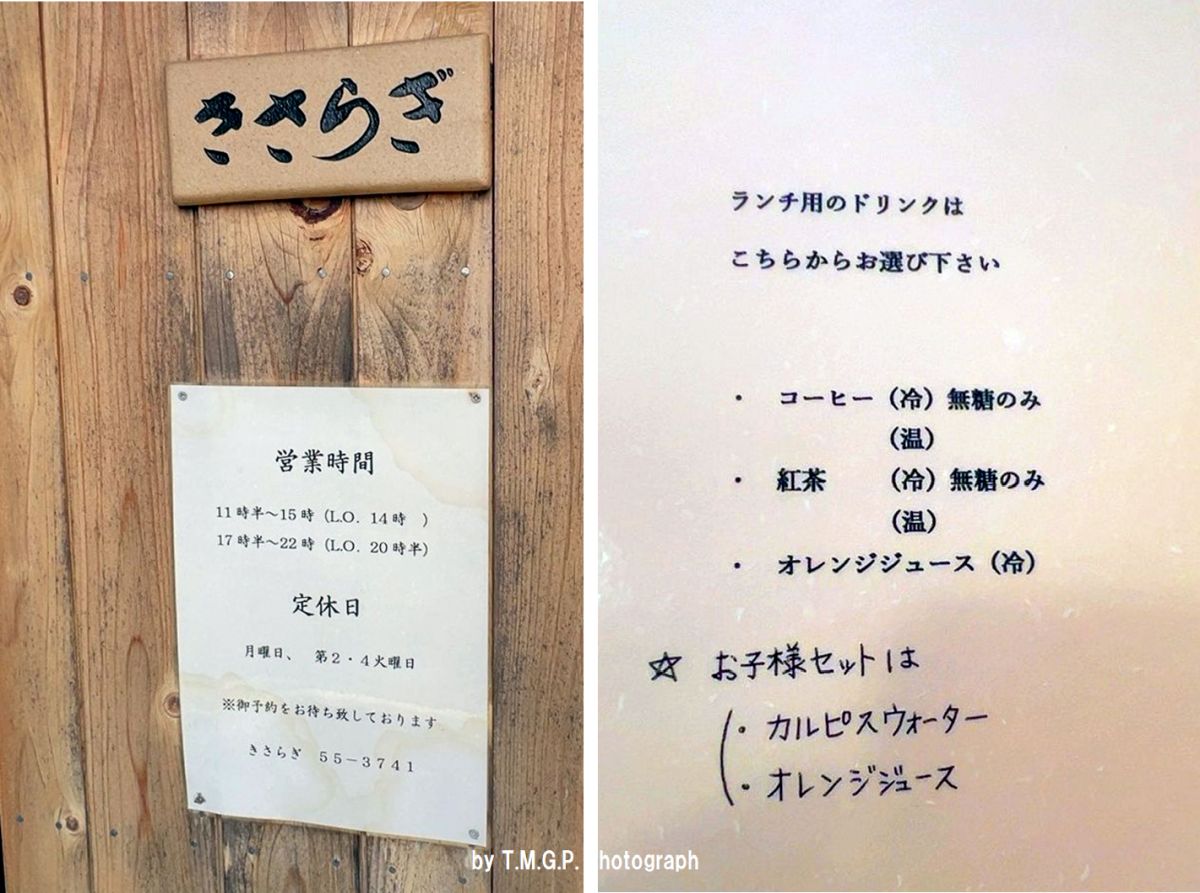 「昼のメニュー」を見ると「きさらぎ弁当1,260円」、「きさらぎ弁当プラス焼物2,100円」となっています。