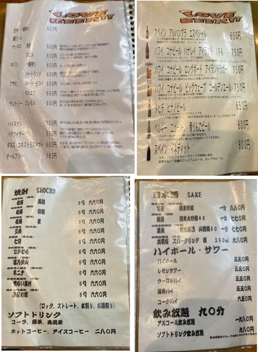当店の最大の特徴はやたらメニューが多いこと。そのメニュー内容を眺めていたらあることに気付く。