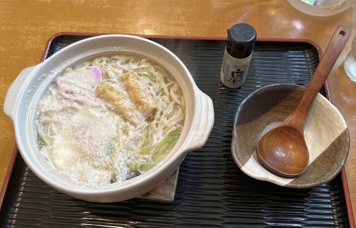 「八丁うどん」はメニュー名に“煮込み”がついていないので、おそらくスープにうどん麺を入れた後に煮込まない普通のうどんタイプと推測。