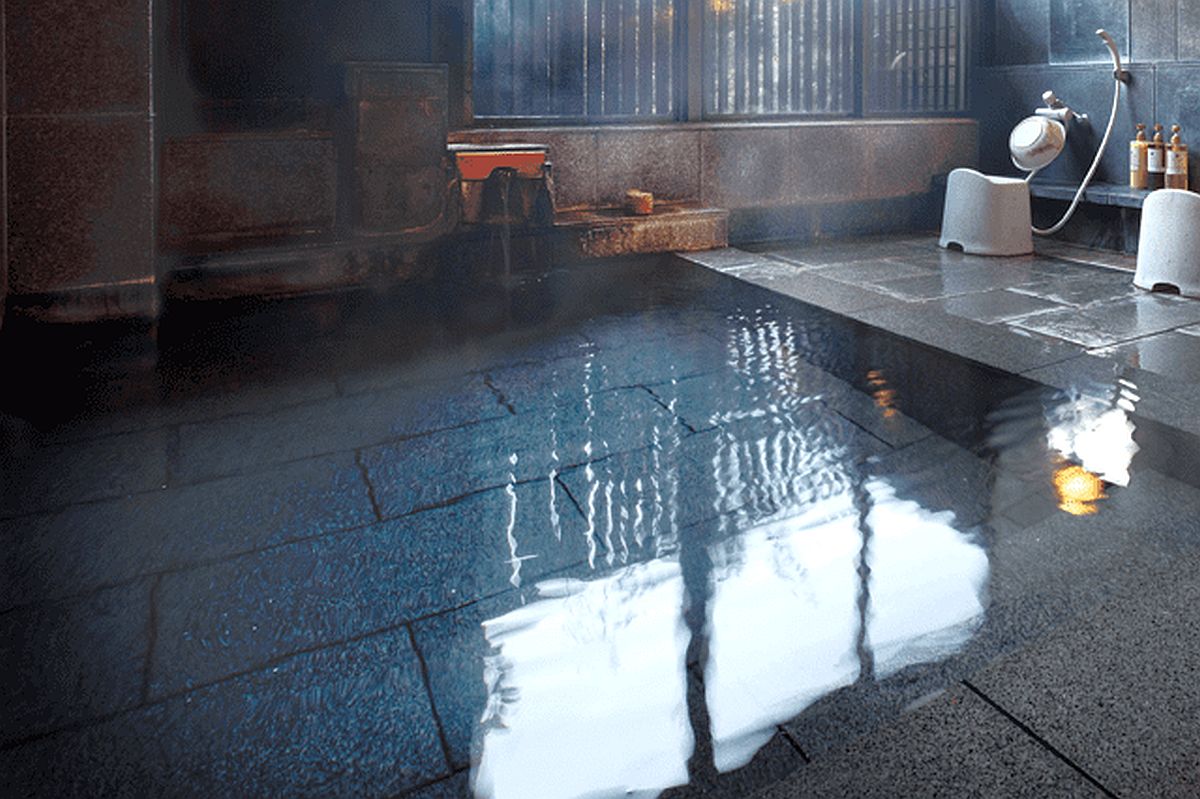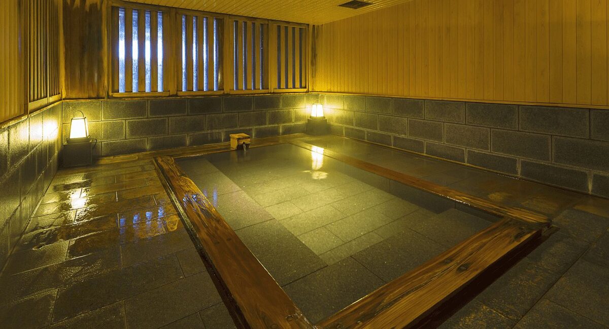 見た目の印象を大事にする温泉客向きに造られていて、宿の気配りが伺える浴場。
