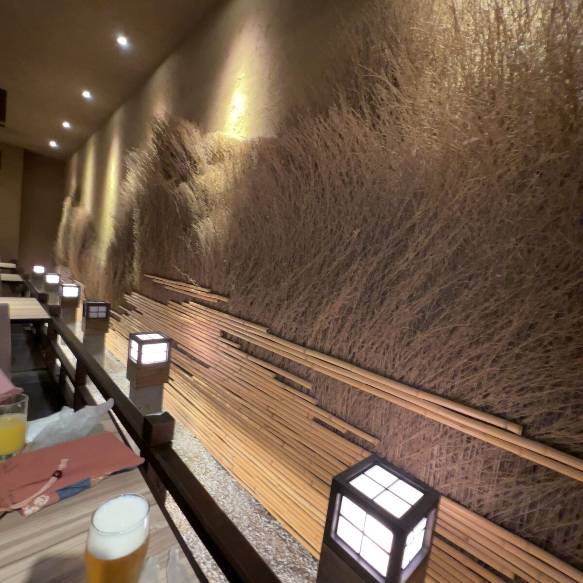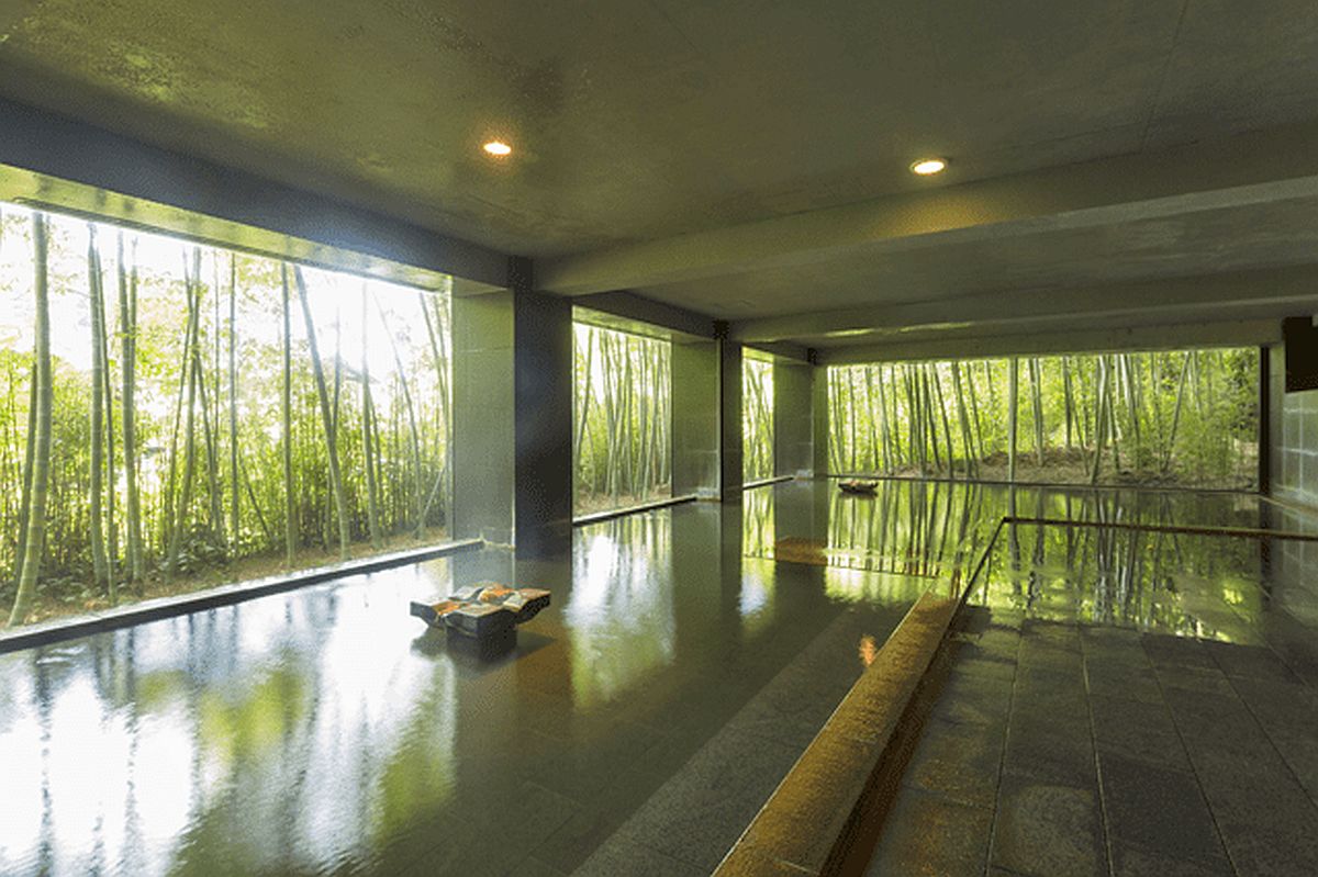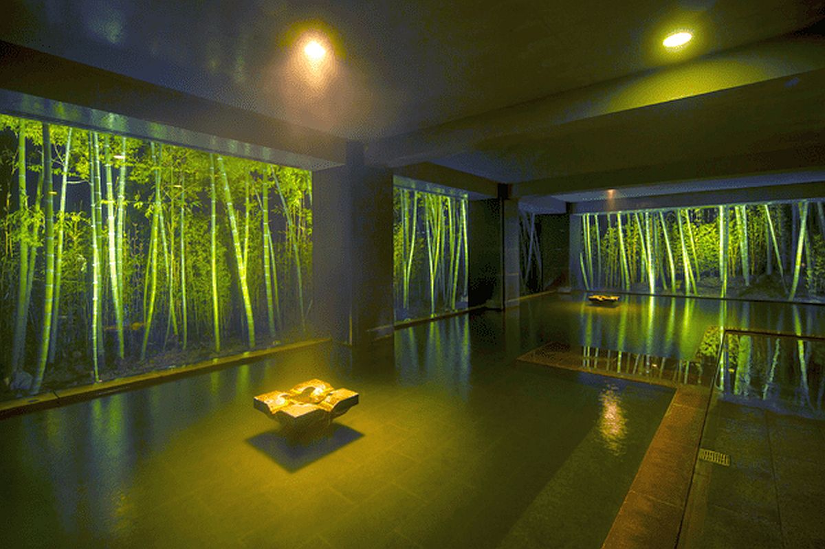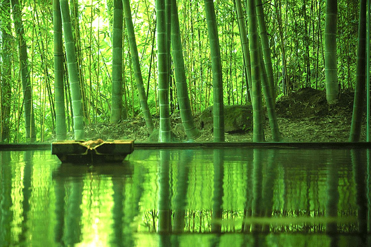 日が落ちるまでは陽光に照らされた竹林を、夜が更けてからはライトアップされた竹林を眺めて入る。