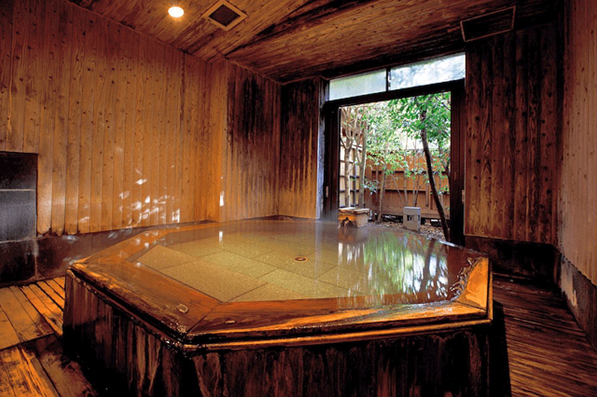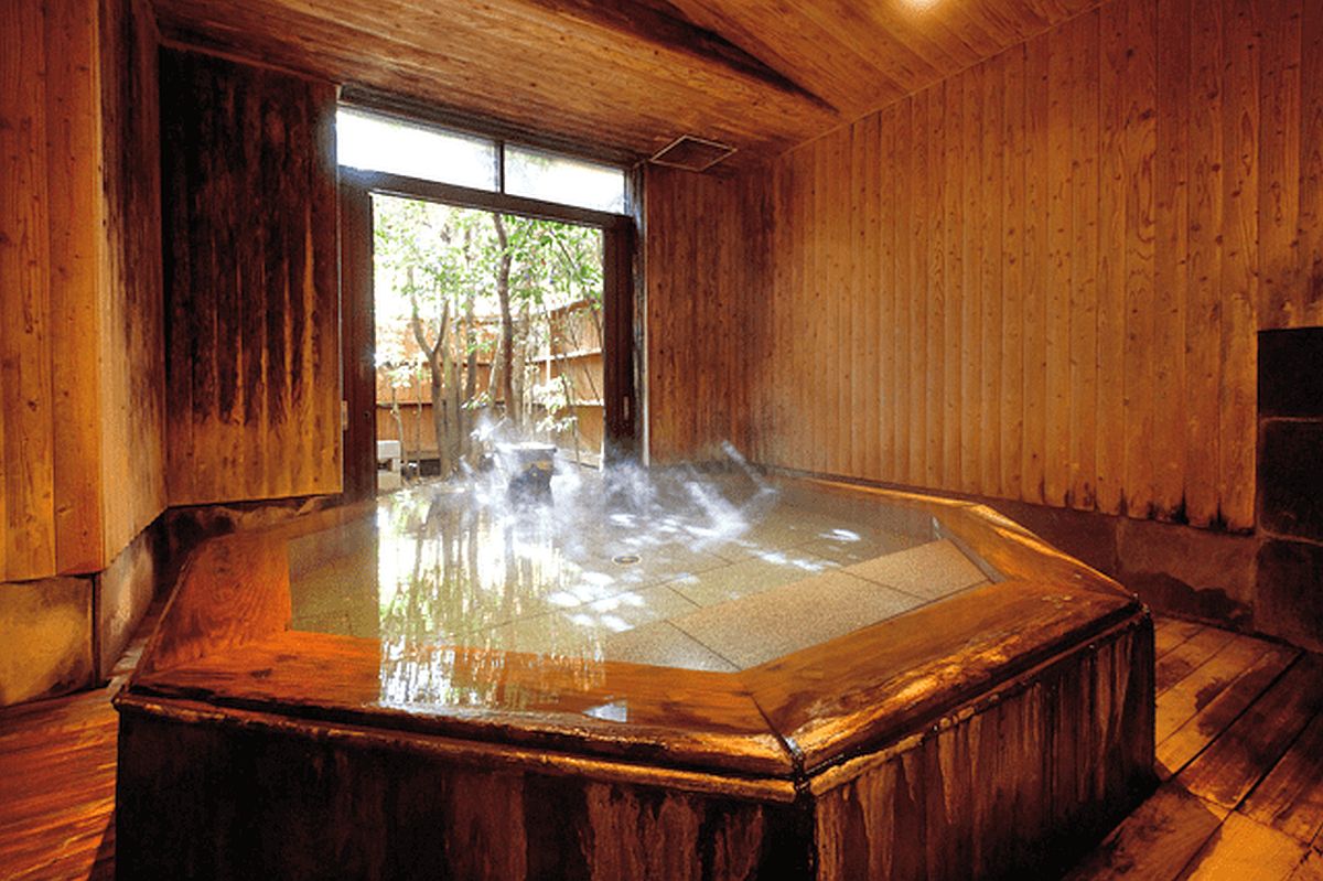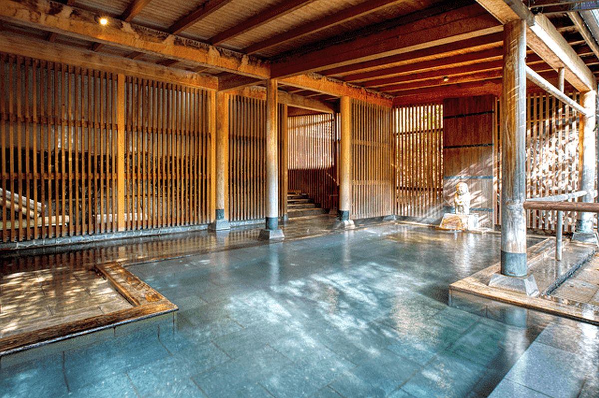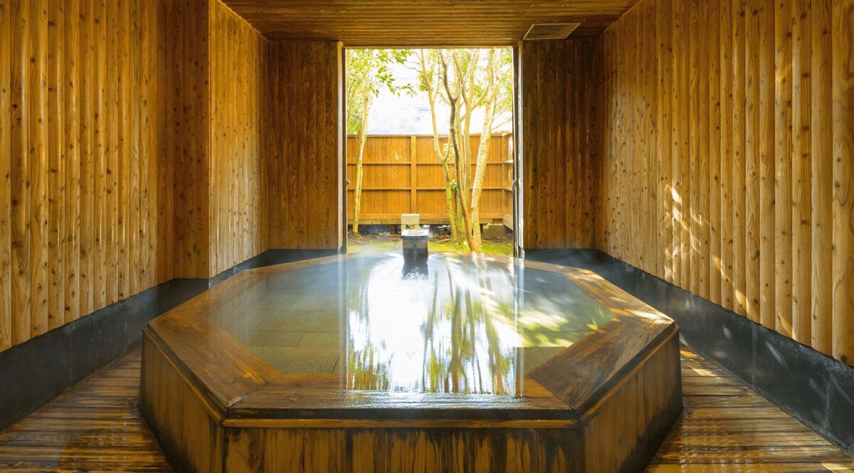 地元産の小国杉で造られた浴場。森林浴をイメージしているとか。