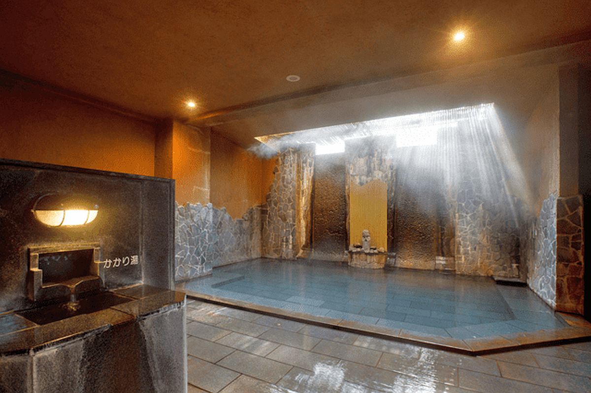まずは温泉について。当施設には7つの大浴場がある。内訳は4つの大浴場(内風呂)、3つの露天風呂(外風呂)、2つの貸切風呂(室内風呂)。ホームページによると「すべて源泉かけ流し」
