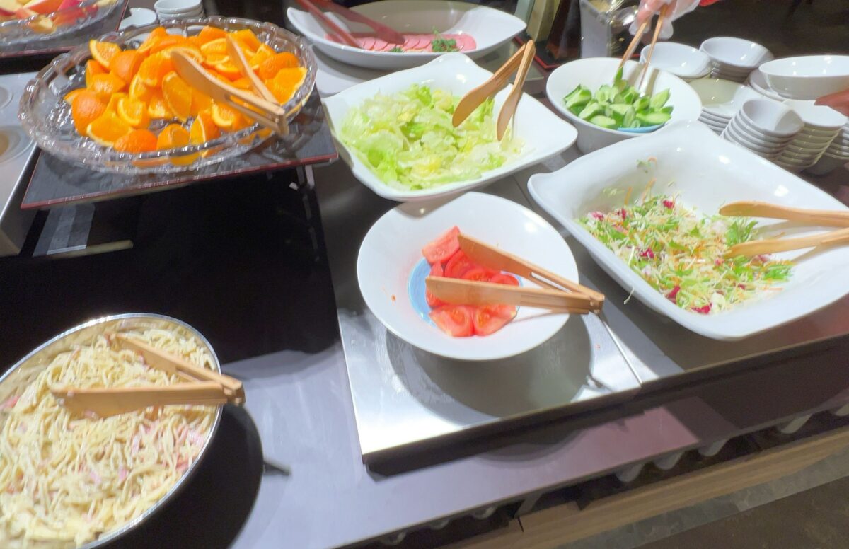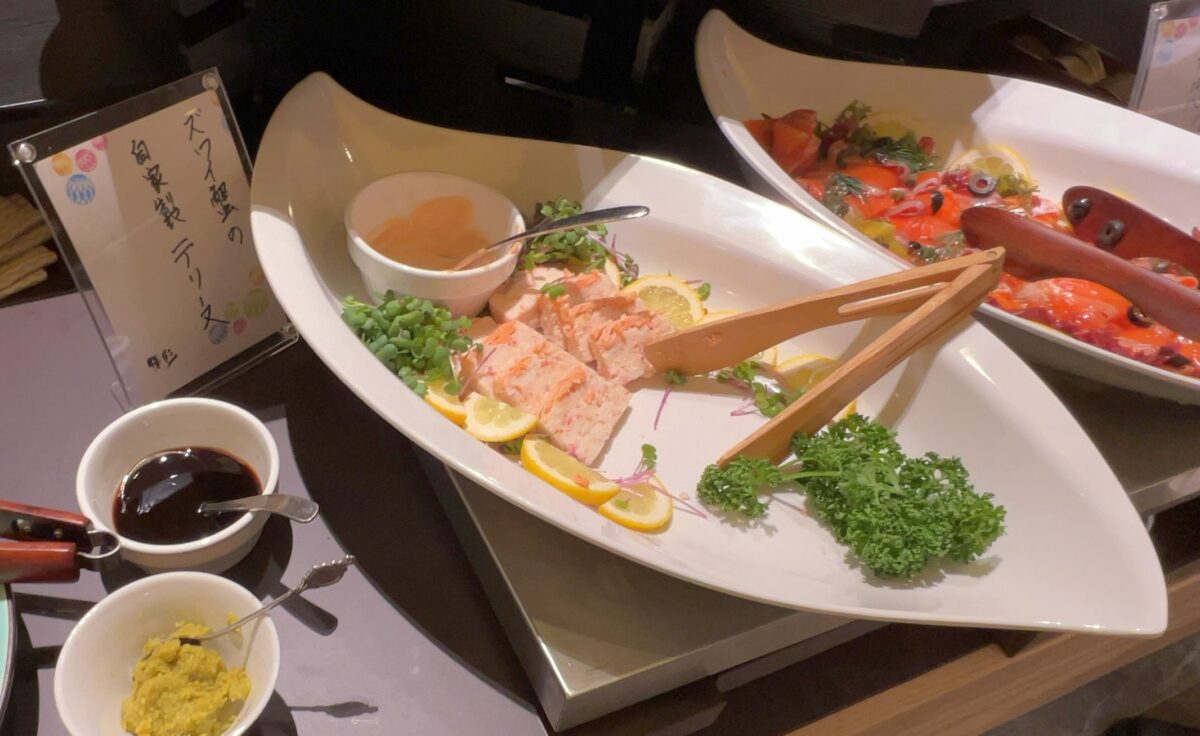 地元食材が充実したバイキング。全国、どこへ行っても各施設が嗜好を凝らして提供してくれる。ホントに感心させられる。