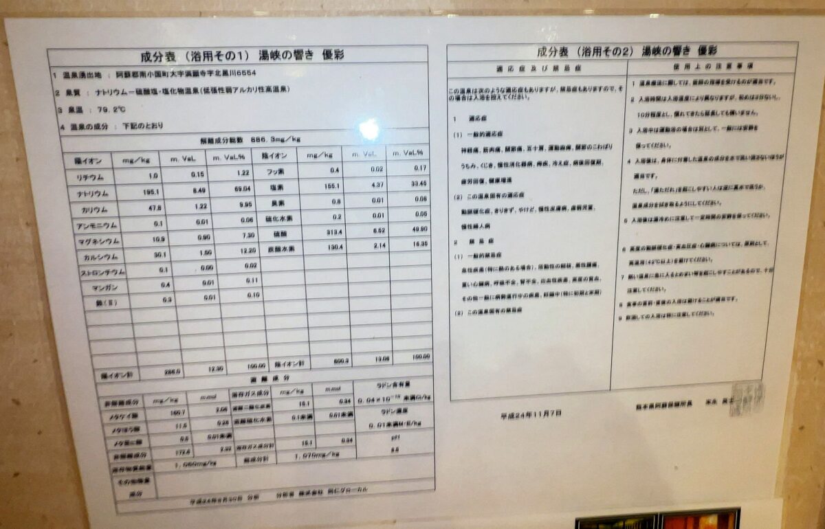 温泉掲示について、前述の通り温泉分析書から大事な情報の一部が掲載されていない。