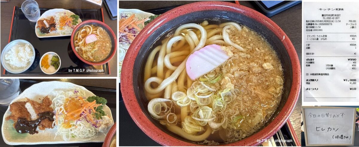 ・和洋食なんでもあります。ランチ「うどん定食」990円(ご飯少なめを選択)。キッチン和味(なごみ,愛知県豊田市)