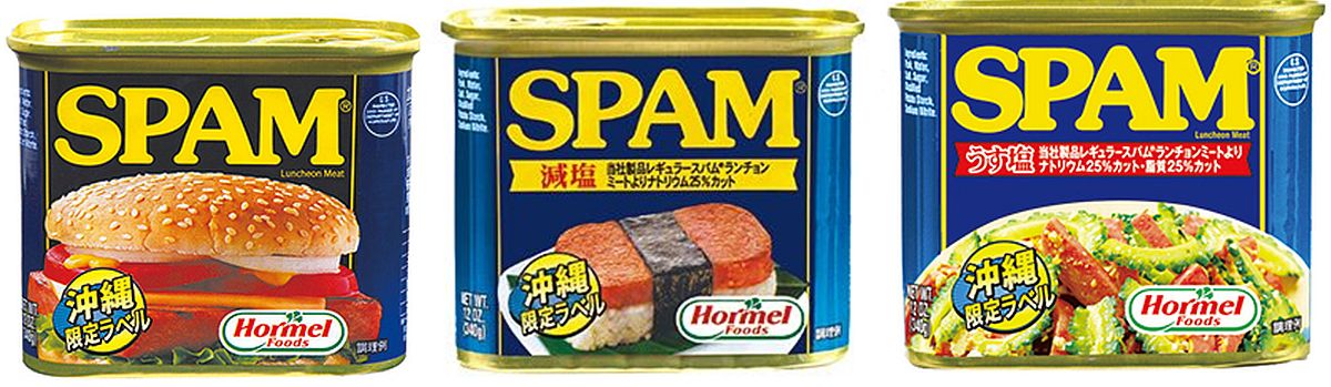 「SPAM(スパム)」はホーメル・フーズ・コーポレーションの商品名で、その他チューリップ・フード・カンパニーの「TULIP(チューリップ)」も見かける。