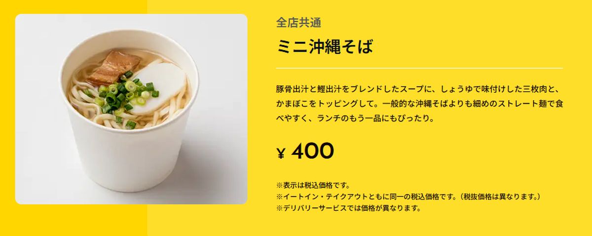 また、全店共通メニューのミニ沖縄そばも見当たらない。