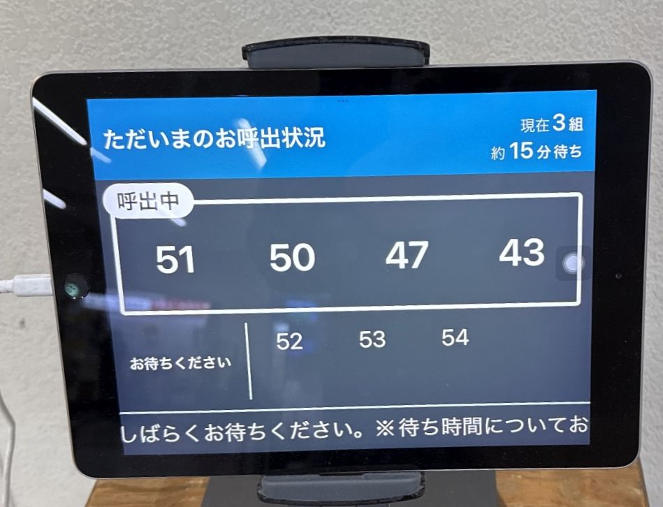 当店は注文後の呼び出し番号を画面に表示してくれる(52番が私の呼び出し番号)ので、注文&精算後は店前で待たなくても良いのが嬉しい。呼び出されてもどっかに行ってしまってポーたまを受け取りに来ていない人が私(52番)の前に4組いた。