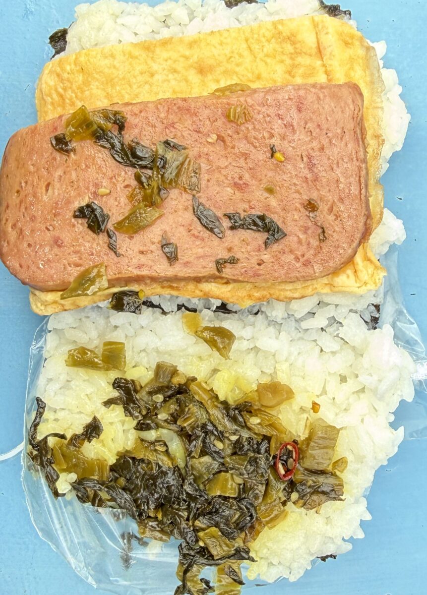 ハワイのスパムおにぎりはカリフォルニアロール同様にアメリカの寿司店で定番化、ポー玉は沖縄で人気の郷土食となっている。