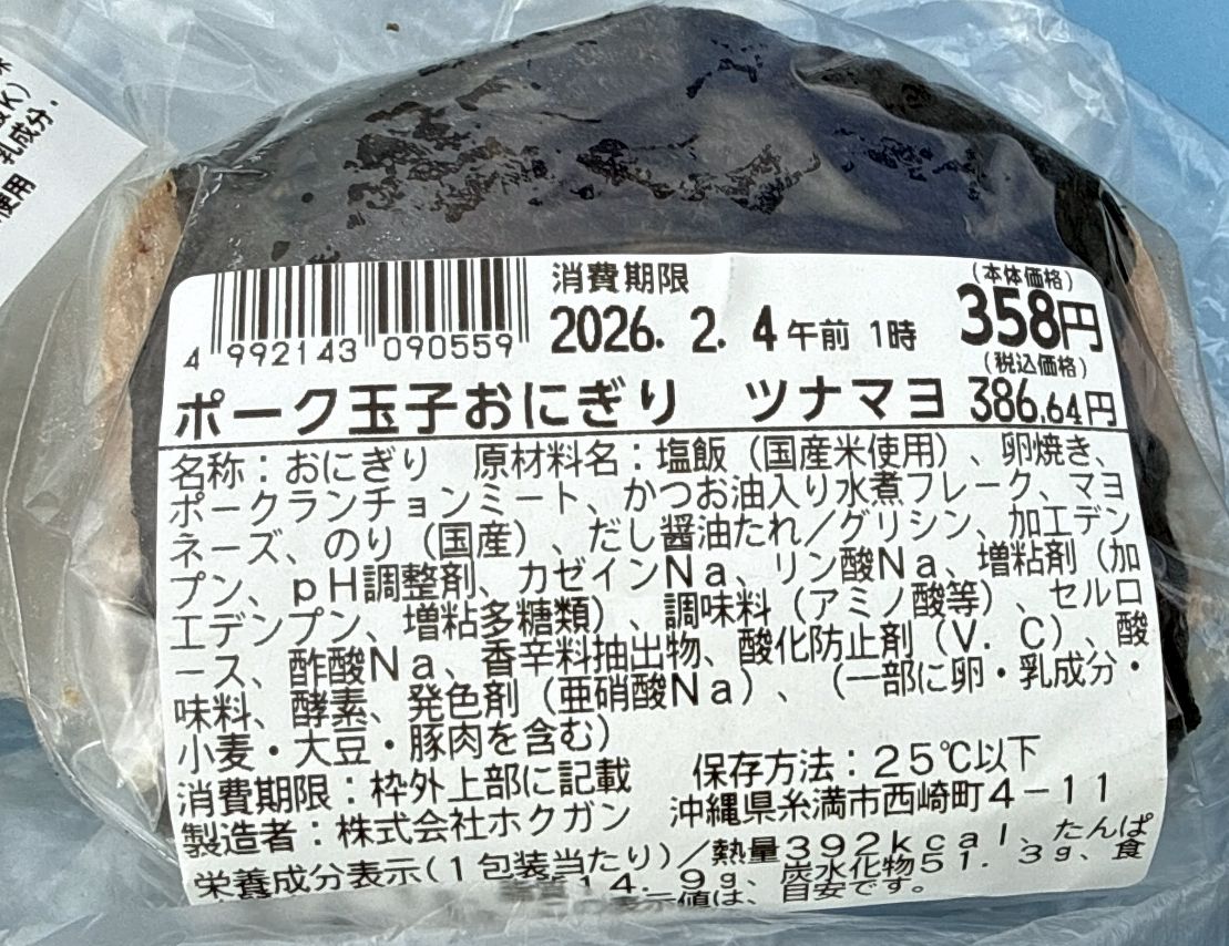 ・ポーク玉子おにぎりツナマヨ386.64円