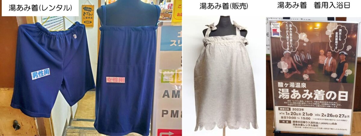 湯あみ着は男女ともレンタルがある他、白い湯あみ着も販売されている。