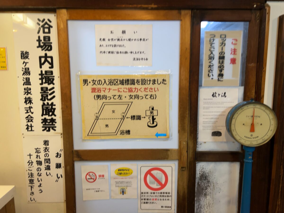 ※更衣室・浴場の撮影は禁止であるだけでなく、撮影機器(スマホなど)の持ち込みだけでも盗撮疑義のリスクがあります。昨今は撮影許可を得た場合でも自身のサイトにアップすることを躊躇。当湯のように混浴浴場だと余計に注意が必要。