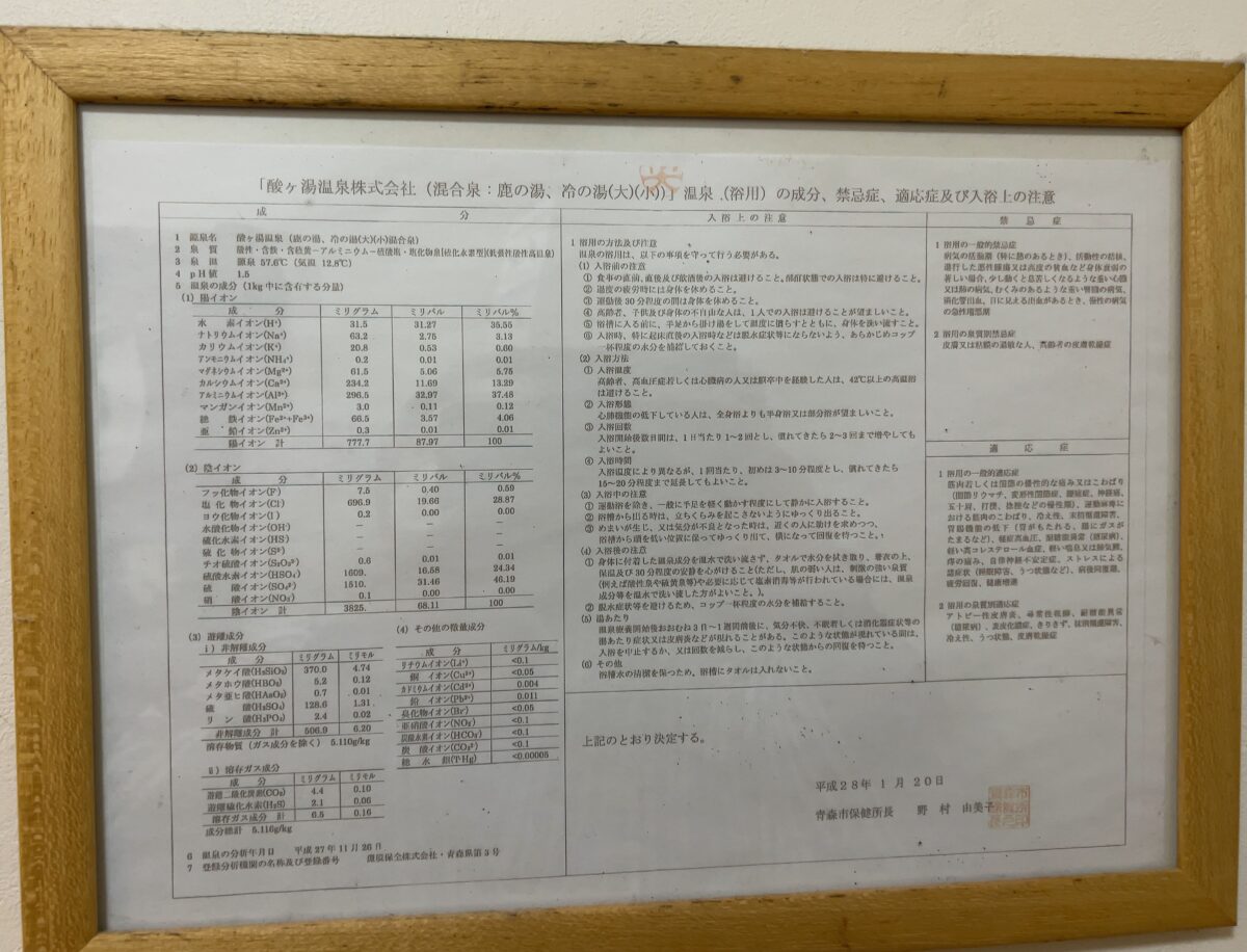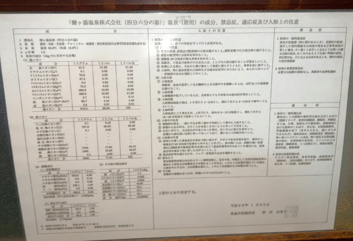 酸ヶ湯温泉(四分六分の湯)温泉分析書より