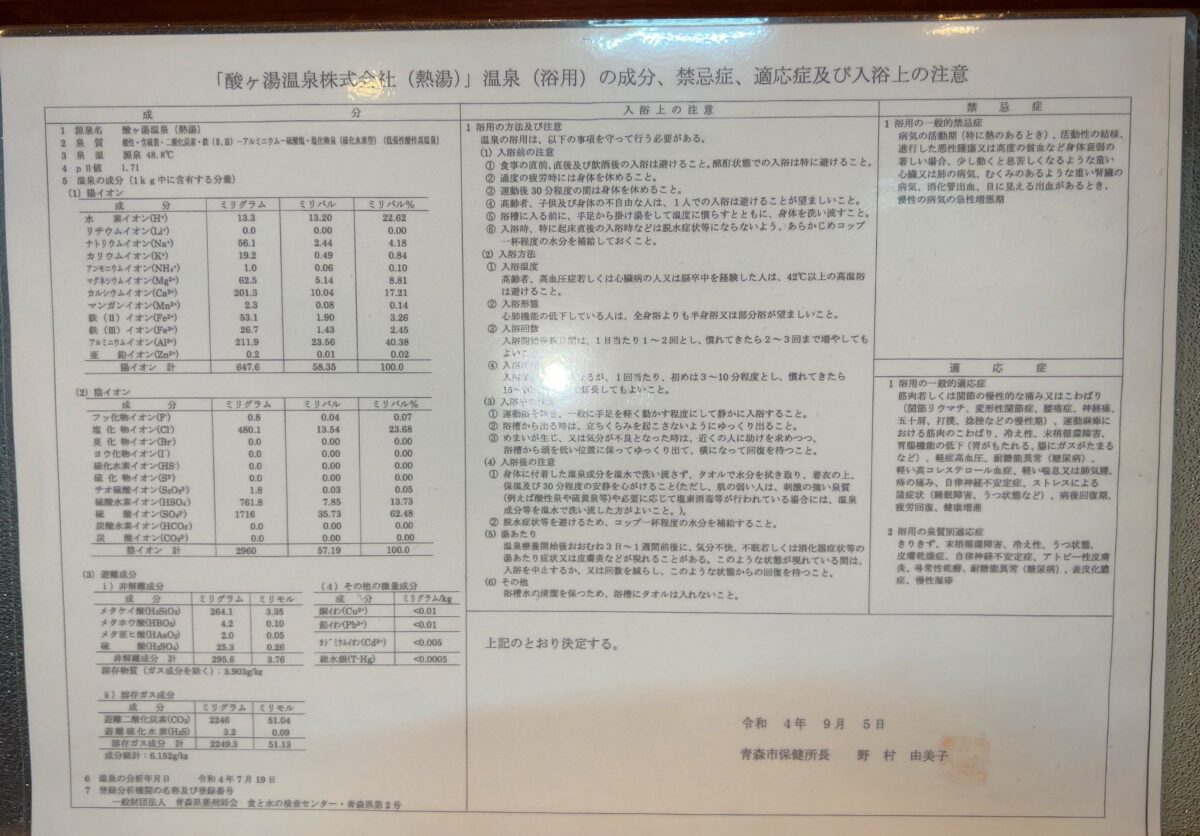 酸ヶ湯温泉(熱の湯)温泉分析書より