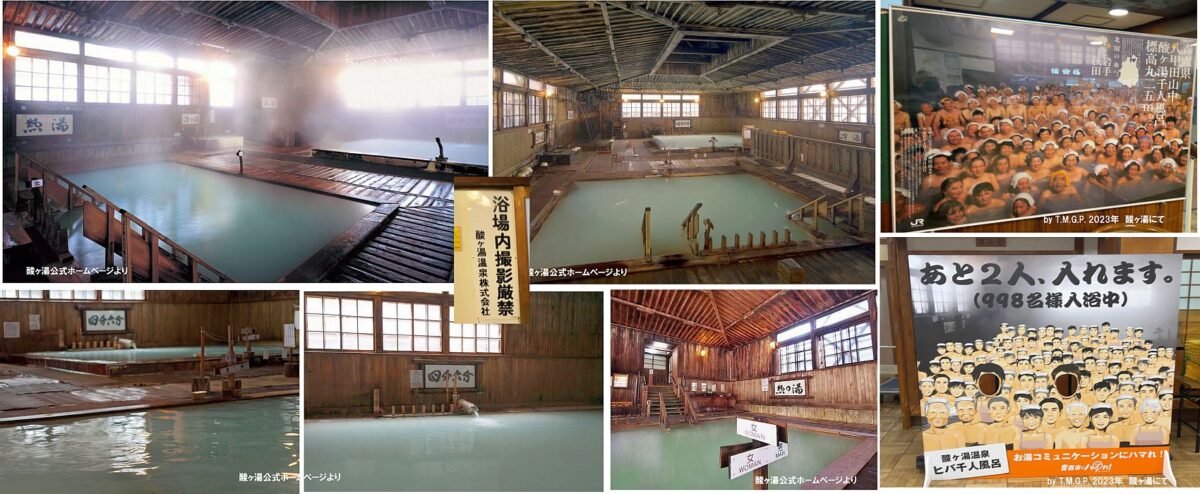 ↓ 酸ヶ湯温泉公式ホームページより。右端の入浴図は宿泊時にロビーで撮影。