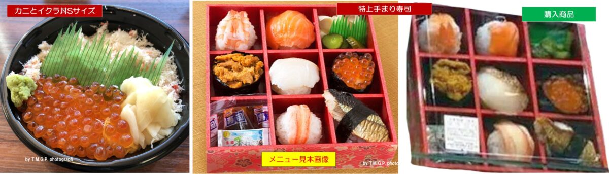一応、注文があってから作るというのが当店のウリ。ただし、カニのほぐし身とイクラ製造はすず花調理センターもしくは他工場製造品の取り売り品と推測。