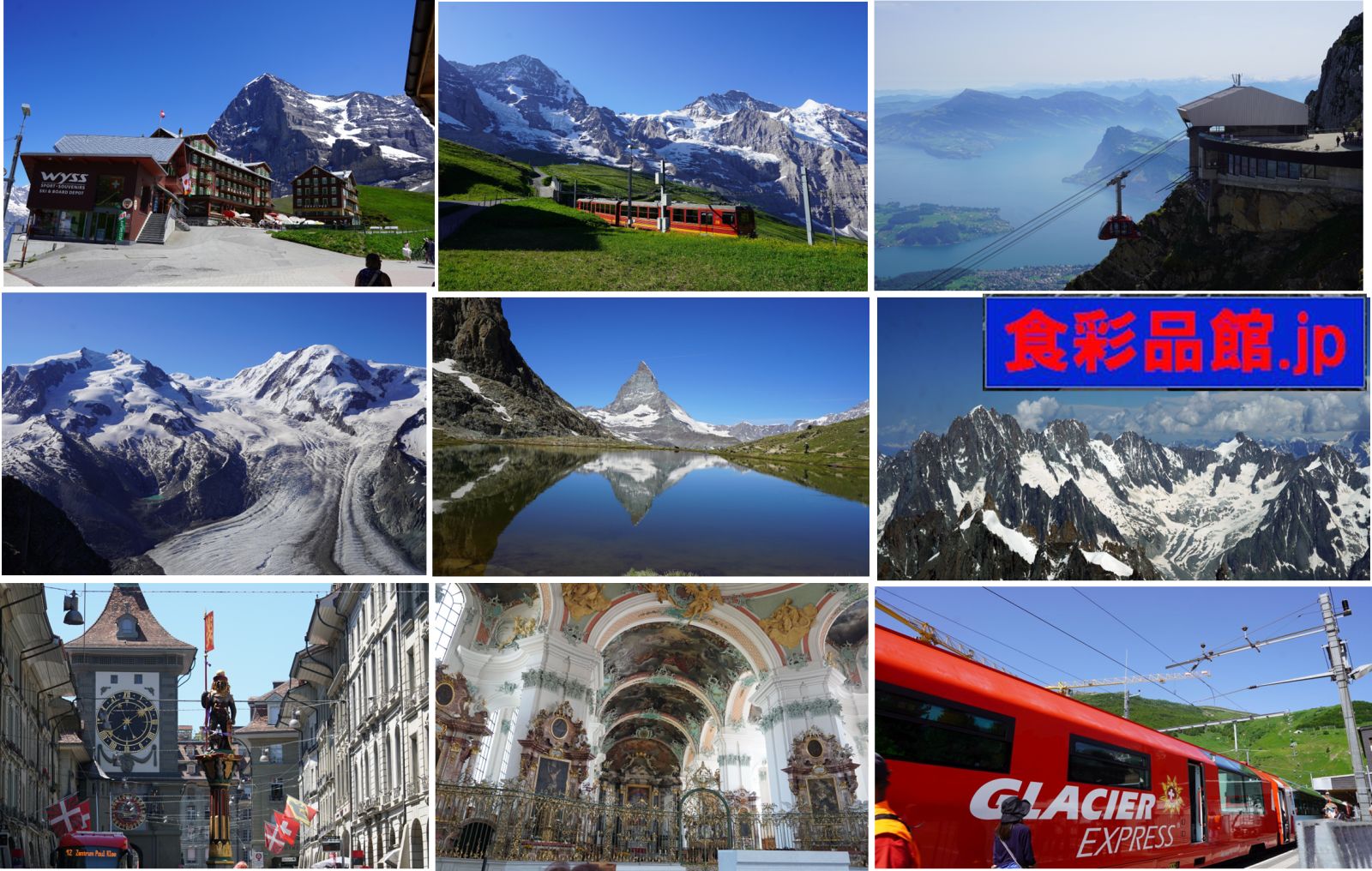 天候に恵まれた「JTBのビシネスクラスで行く憧れのホテル宿泊とスイス5大名峰、6展望台、10日間の旅」まとめページ。リッフェルハウスに宿泊,スフィンクス展望台(アイガー,メンヒ,ユングフラウ),ツェルマット,ブライトホルン,ゴルナーグラートからマッターホルン,007のシルトホルン,サンモリッツ,ディアボレッツァ展望台からベルニアアルプス,ハイジのマインフェルト,.ルツェルン,ピラトゥース展望台から中央アルプス,フランスシャモニー,エギュードゥミディ,モンブラン,グランドジョラス,三大北壁,ジュネーブ,チューリッヒ,グラッシャーエクスプレス,氷河特急,ランドバッサー橋,ベルニナ特急,ブルージオのループ橋,イタリア,ティラノ,カートレイン,