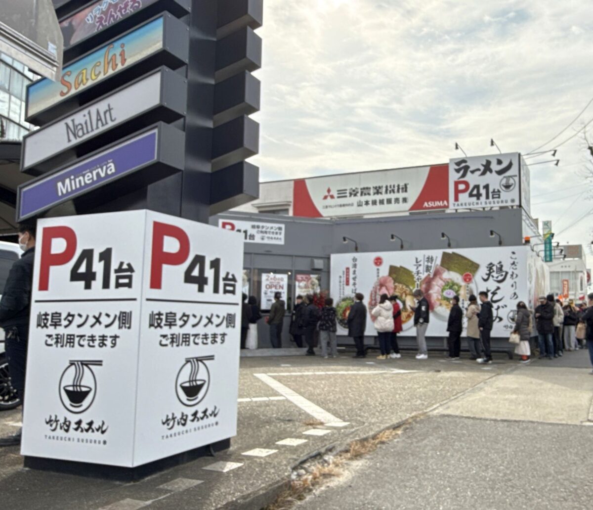 隣地の岐阜タンメンとの共同駐車場にも空きがある。時刻は13時30分ちょっと前。